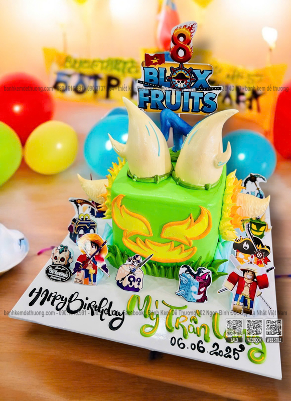 bánh kem blox fruits con rồng xanh lá trần long dễ thương