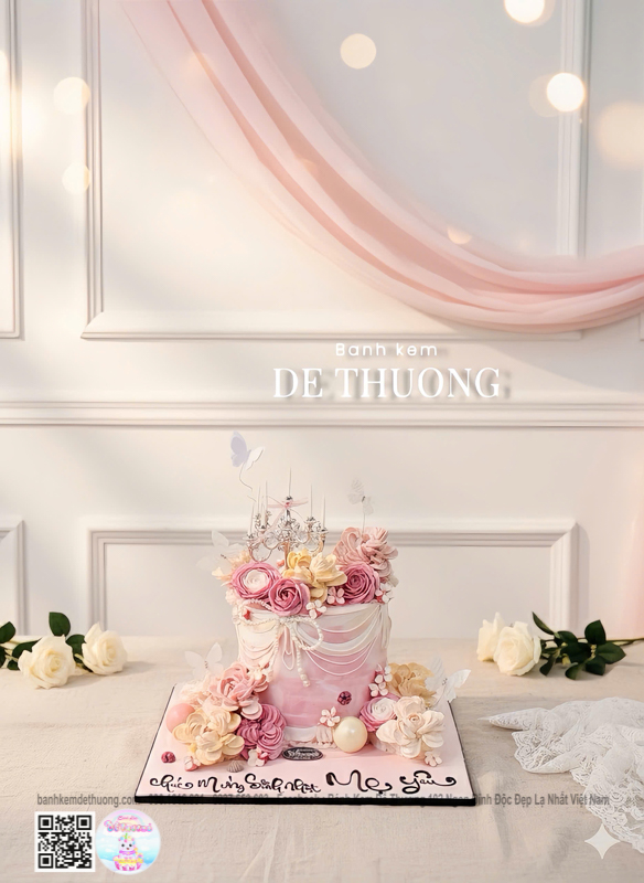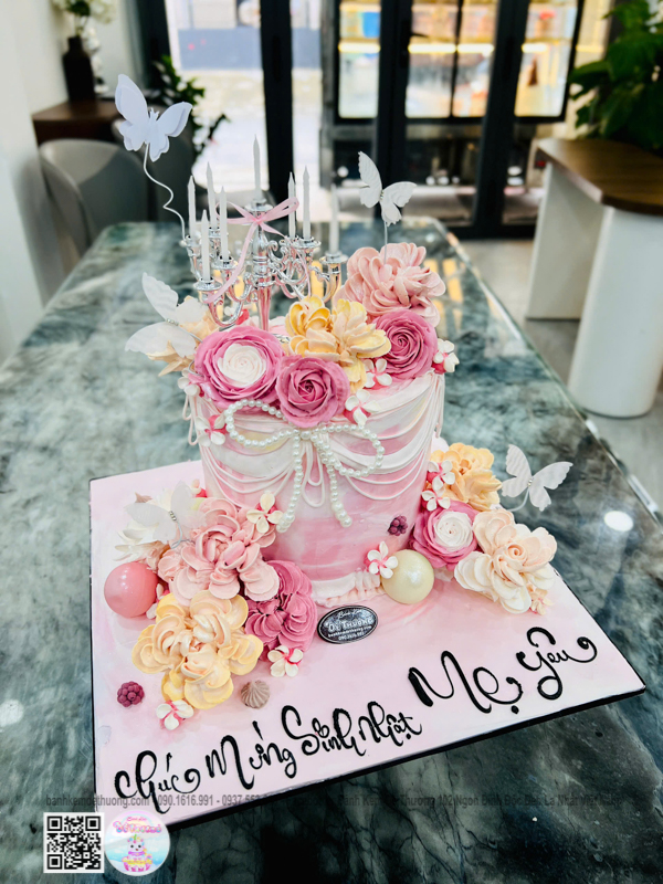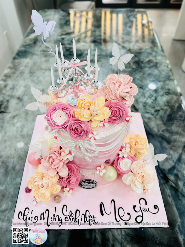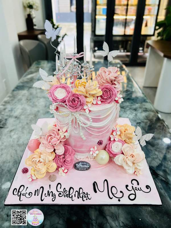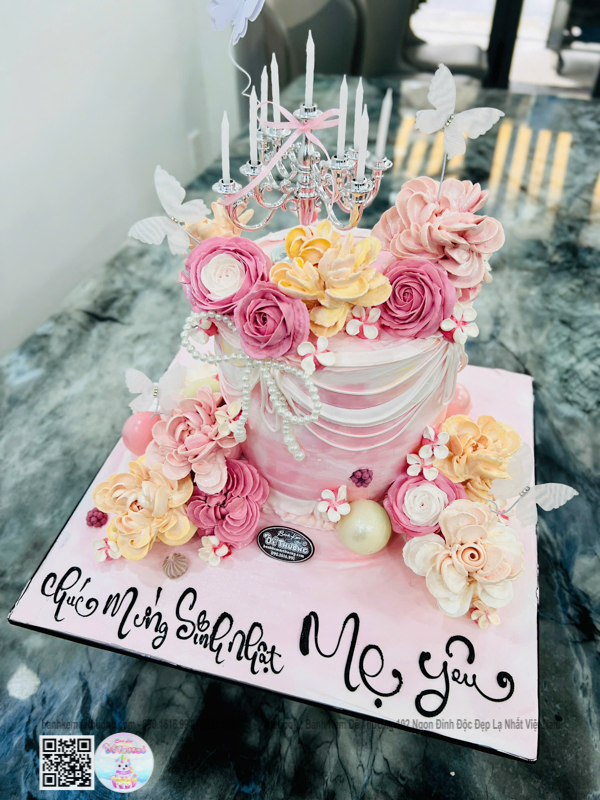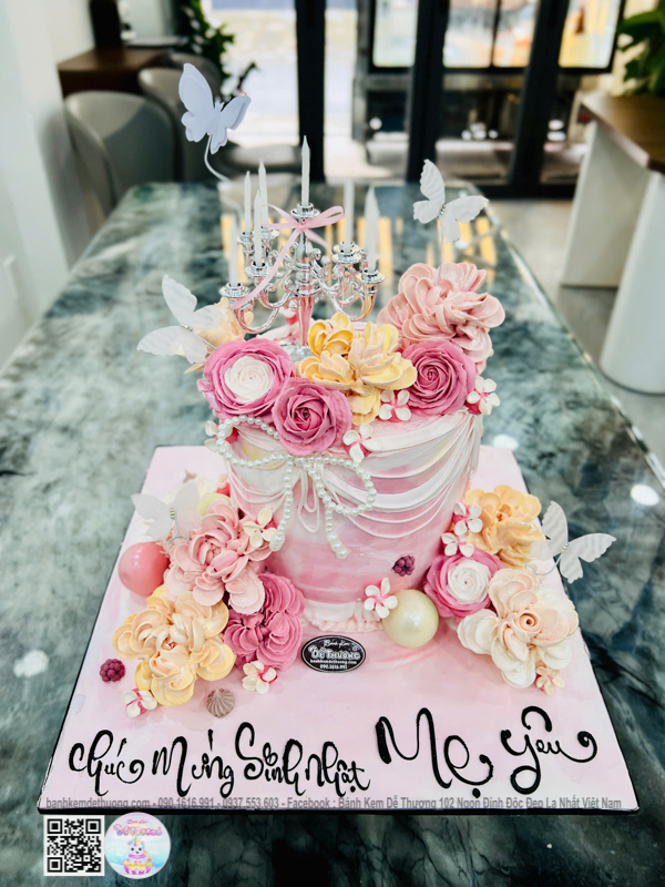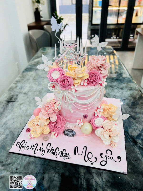 bánh kem bông hoa hiện đại 2025 dành tặng mẹ yêu dễ thương
