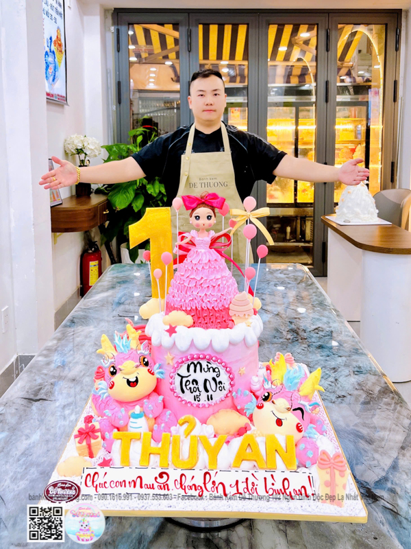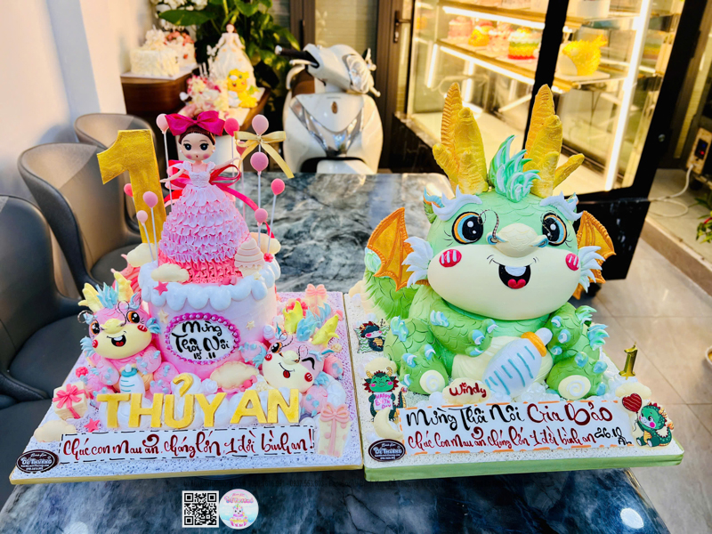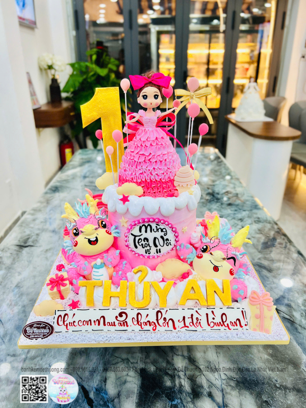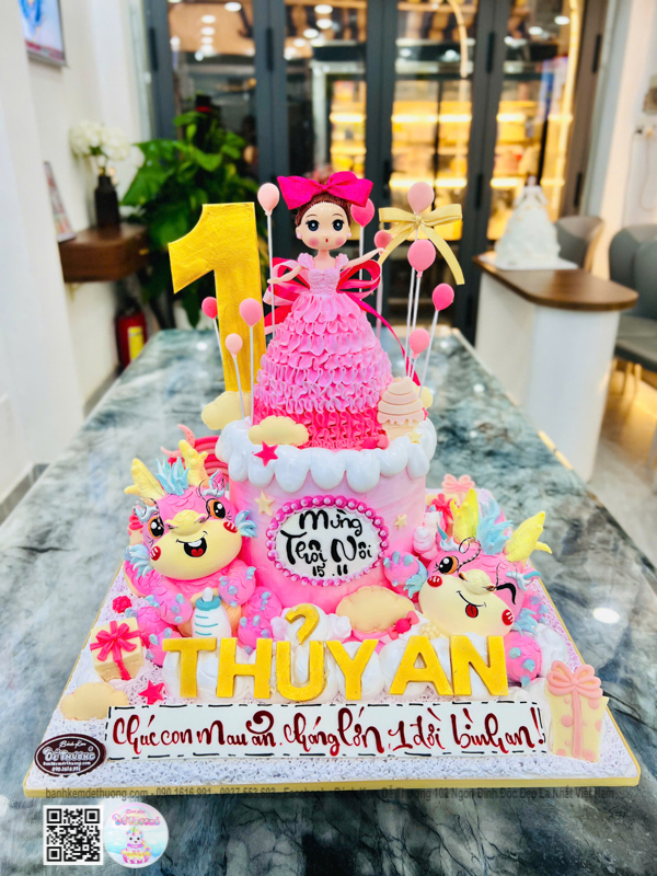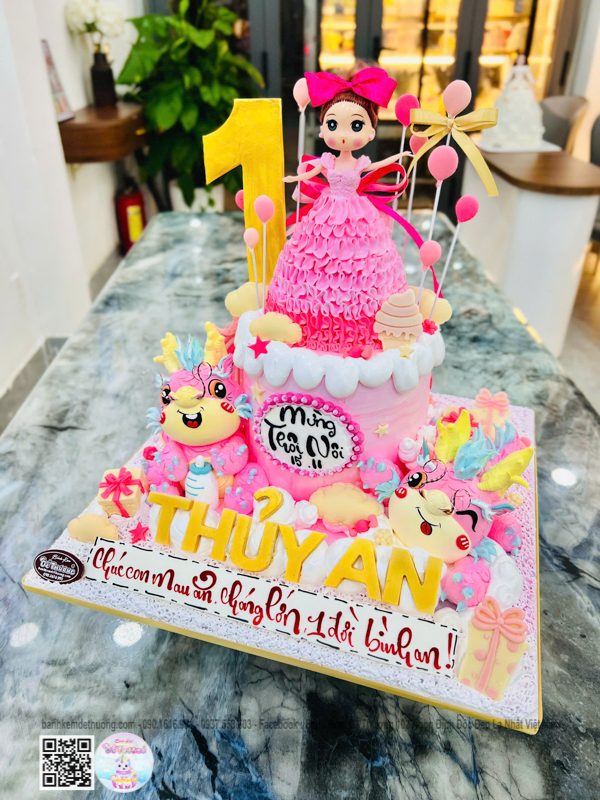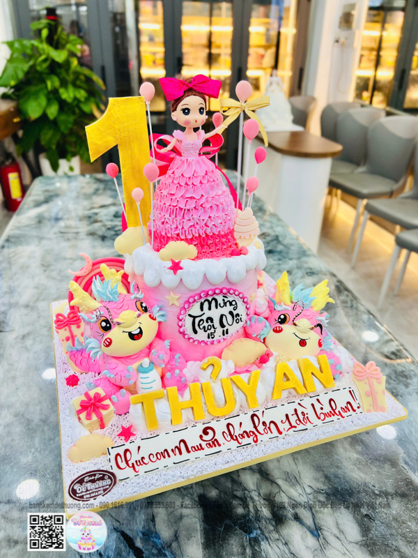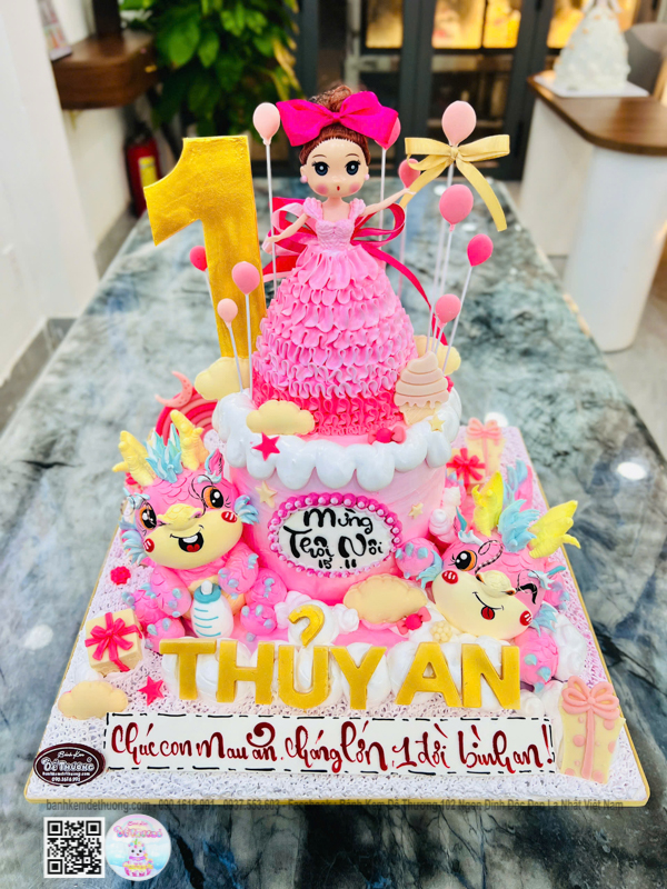 bánh kem búp bê con rồng mừng thôi nôi con gái thủy an dễ thương