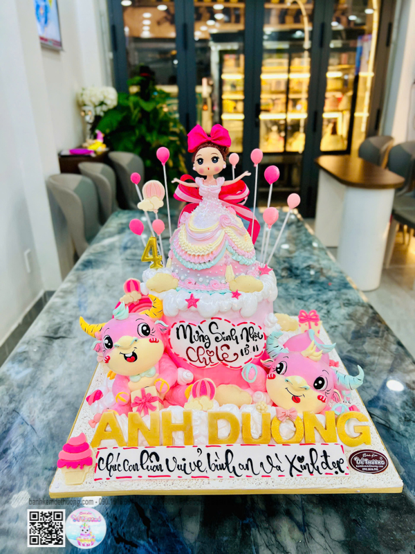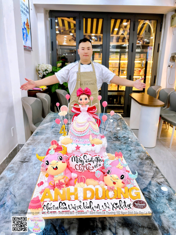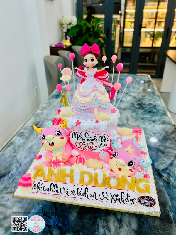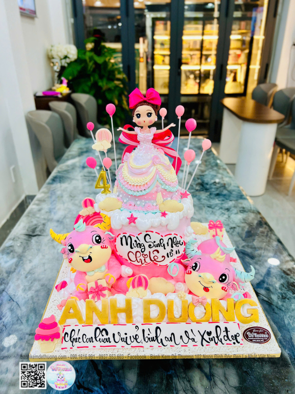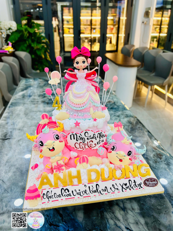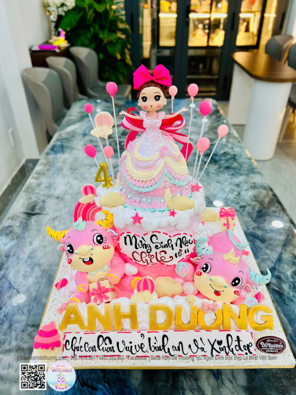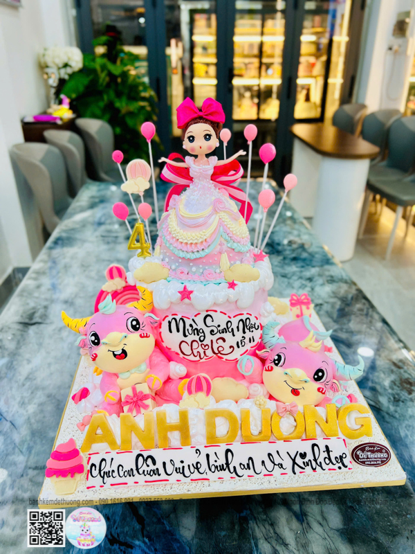 bánh kem búp bê và 2 con trâu chi bi tặng con gái ánh dương dễ thương