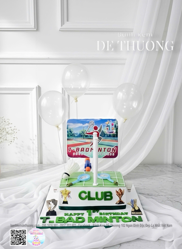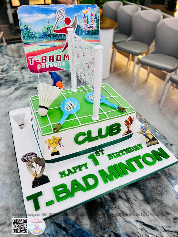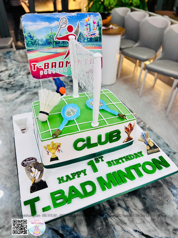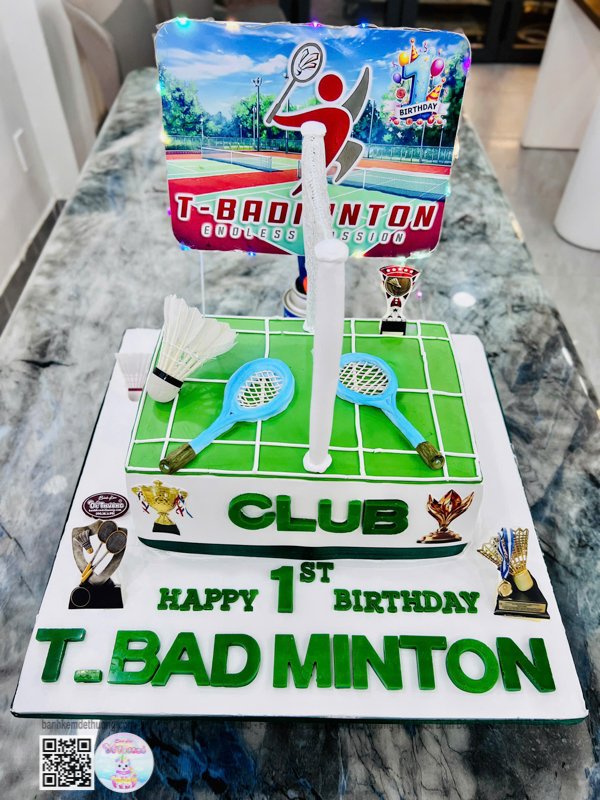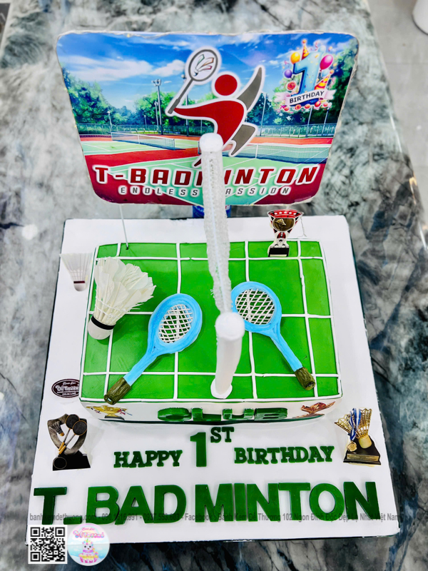 bánh kem cầu lông badminton kỷ niệm tròn 1 tuổi dễ thương