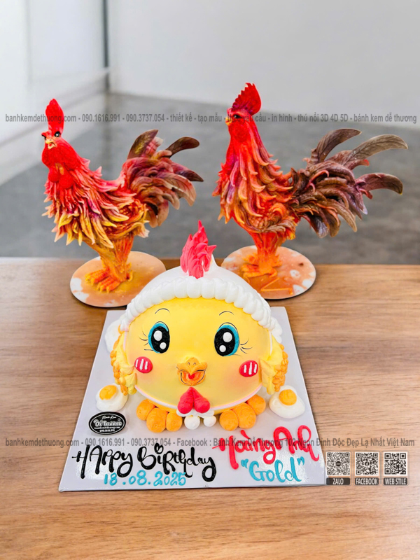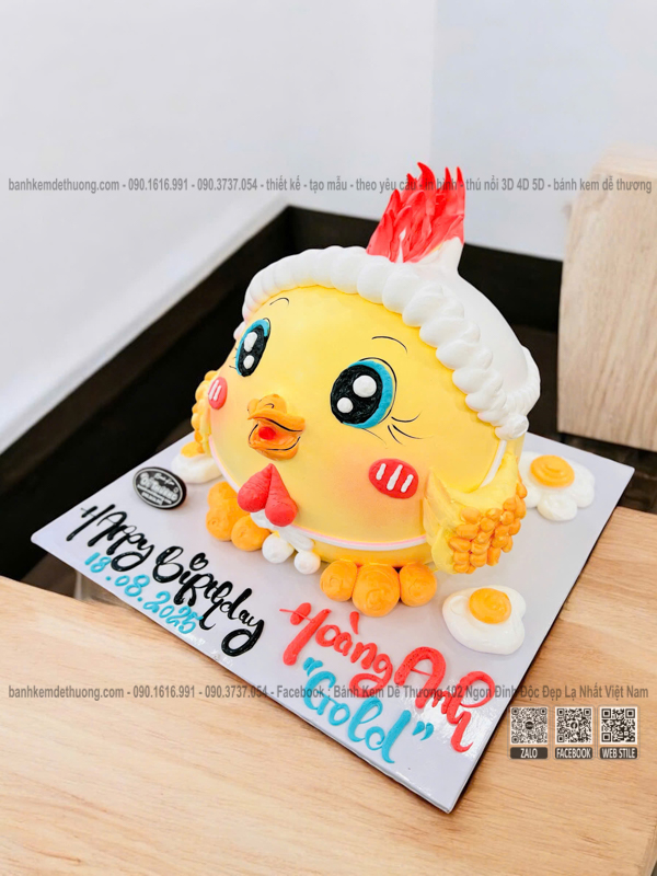 bánh kem con gà 3d hoàng anh dễ thương