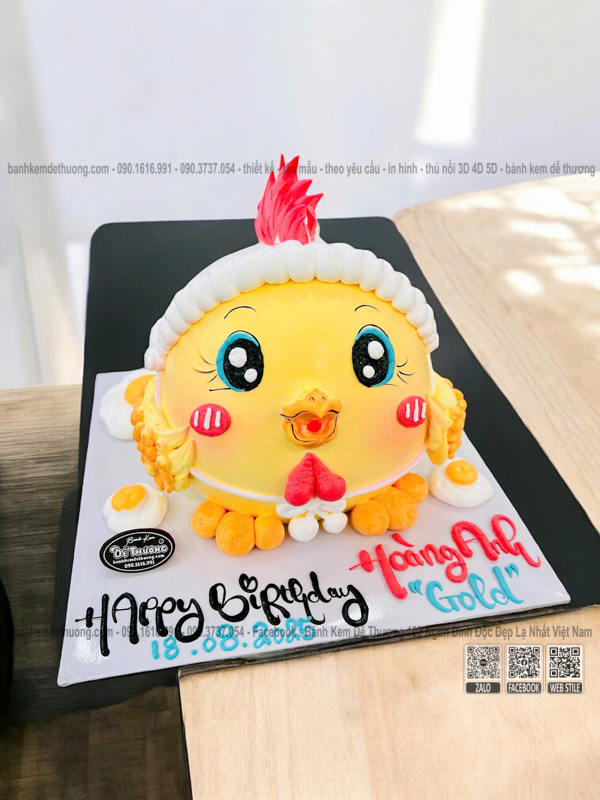 bánh kem con gà 3d khó chịu vô cùng dễ thương
