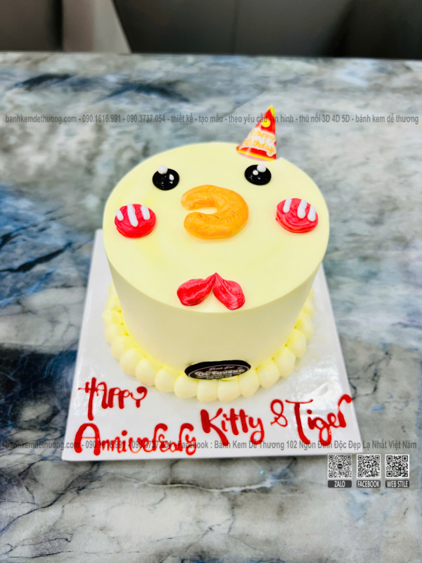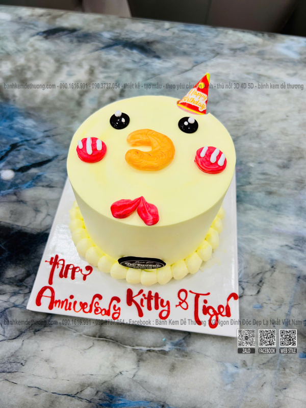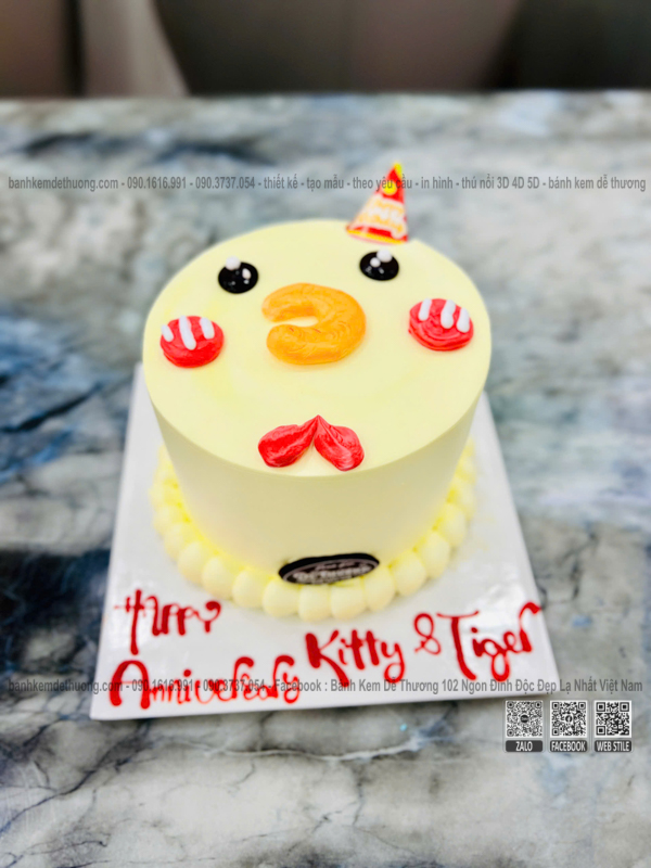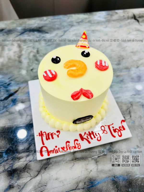 bánh kem con gà mini kỷ niệm kitty và tiger dễ thương