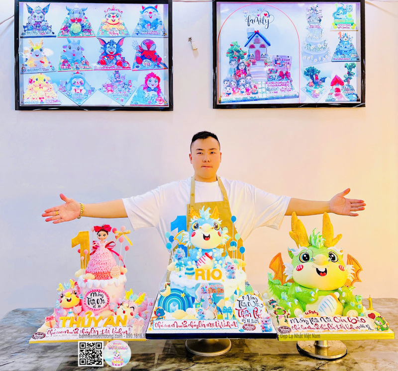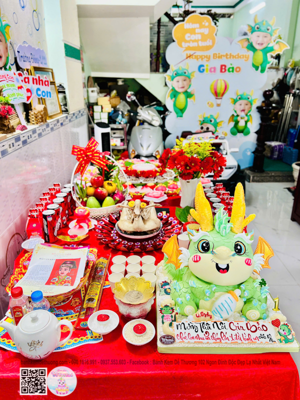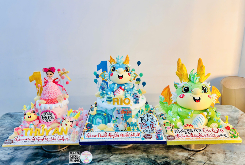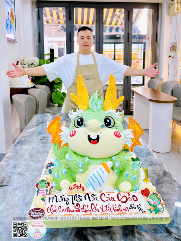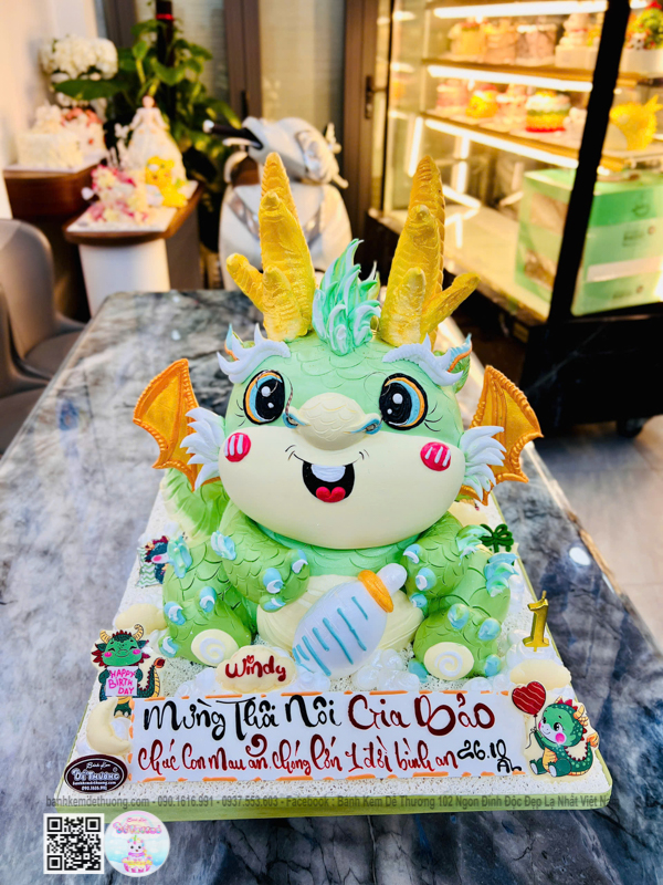 bánh kem con rồng 2 tầng 5d siêu to khổng lồ thôi nôi gia bảo