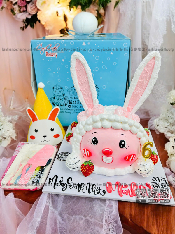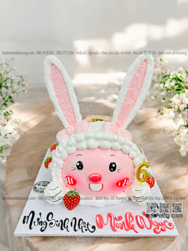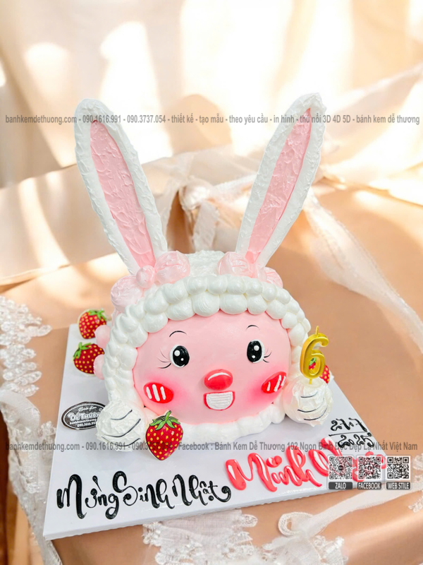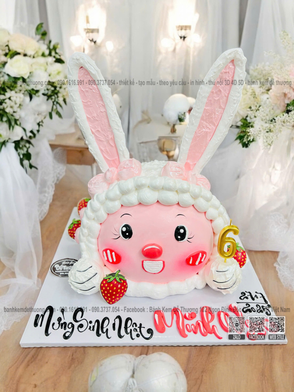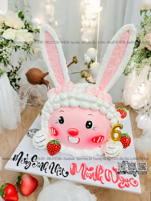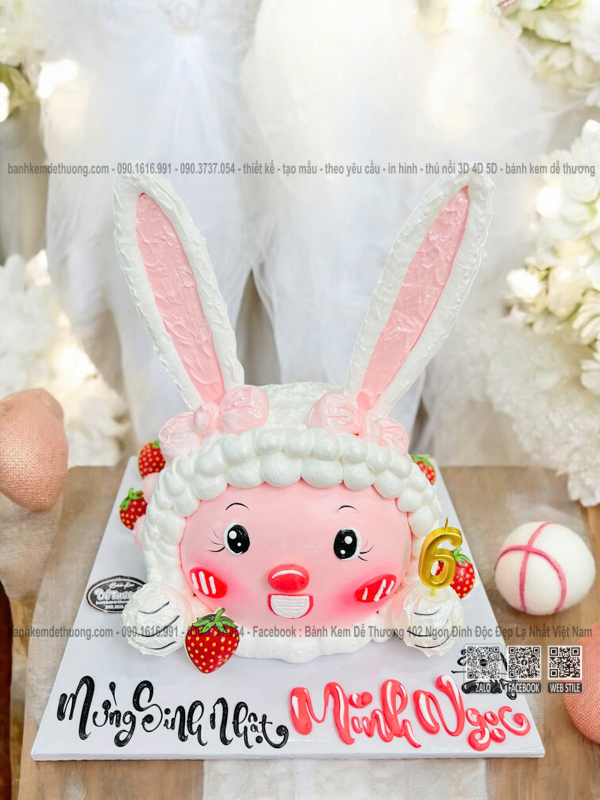 bánh kem con thỏ trắng hồng 3d bé gái minh ngọc dễ thương