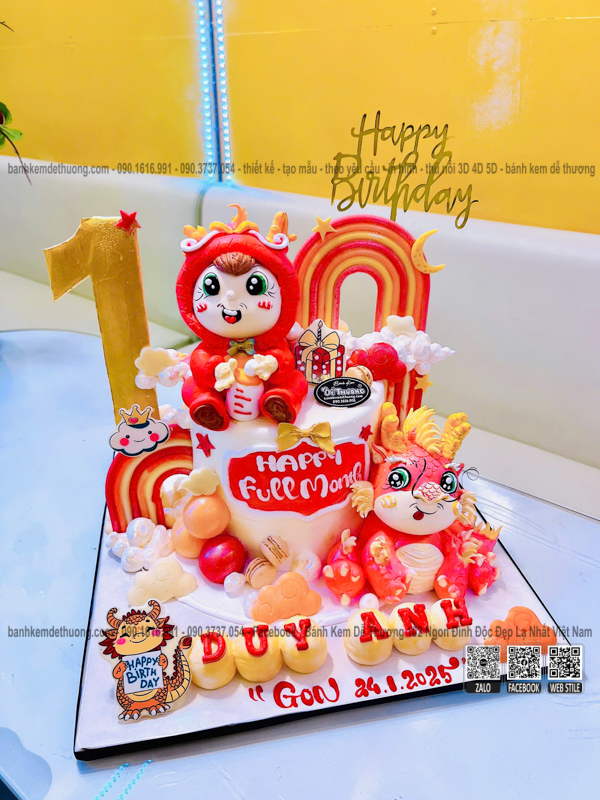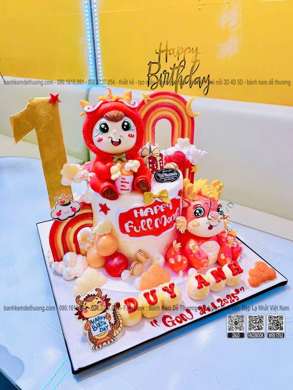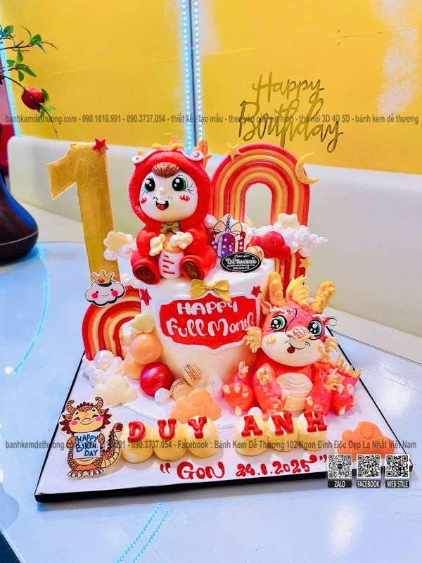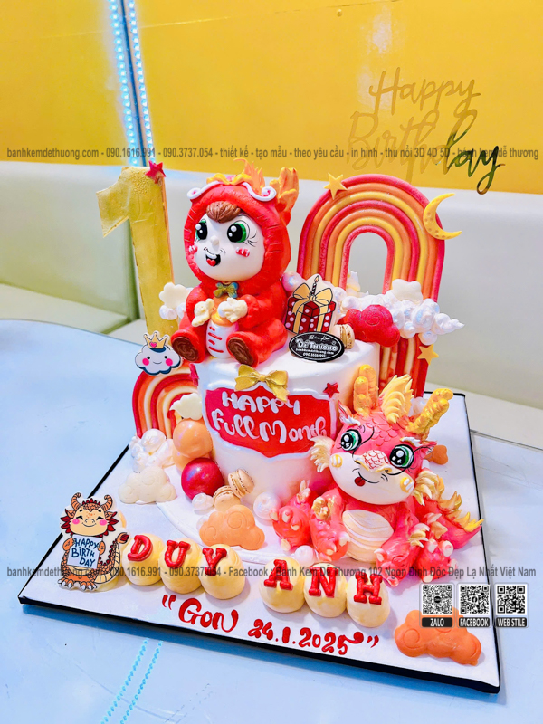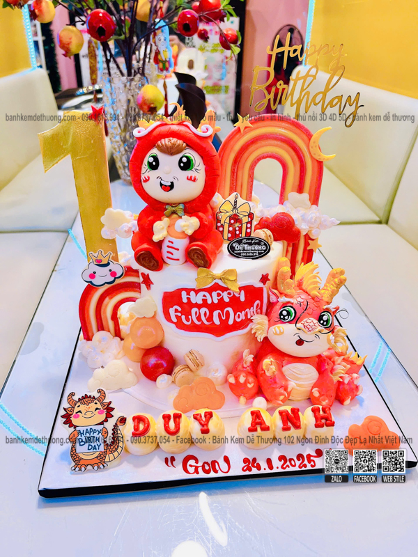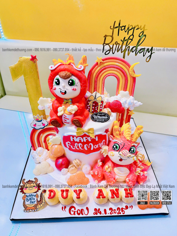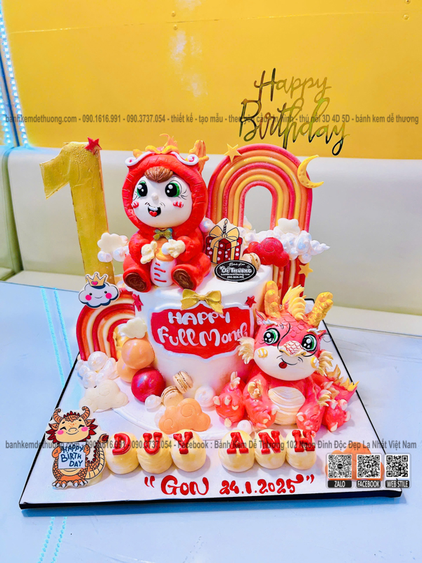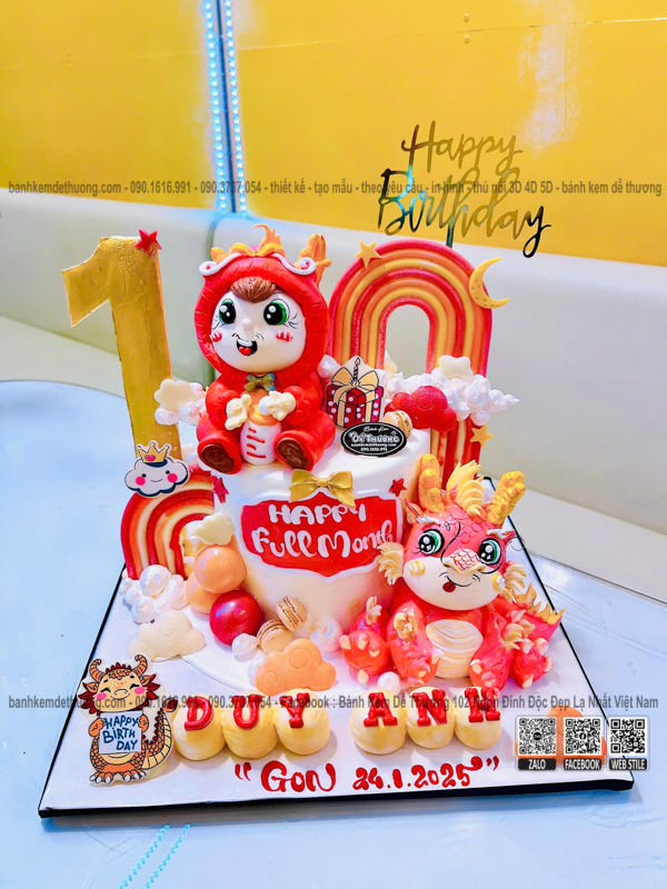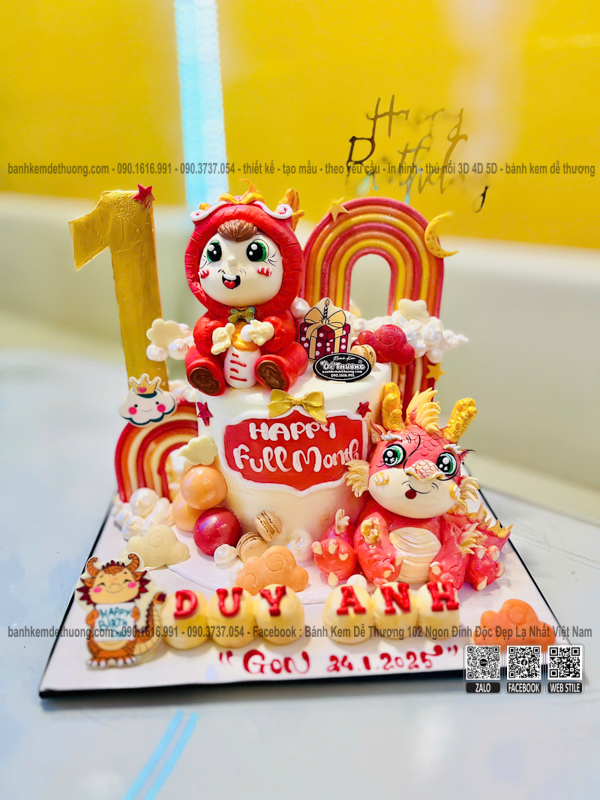 bánh kem đầy tháng con rồng bé trai duy anh dễ thương