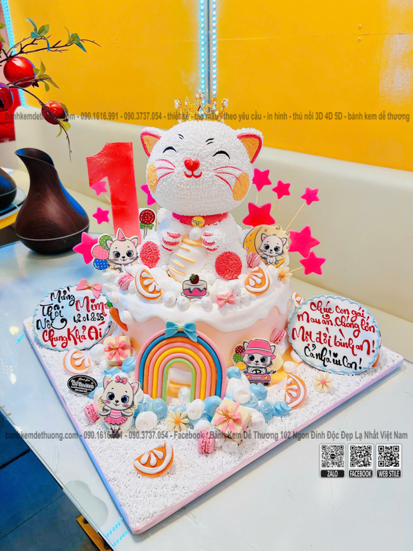 bánh kem dễ thương con mèo kute mừng thôi nôi công chúa khả ái