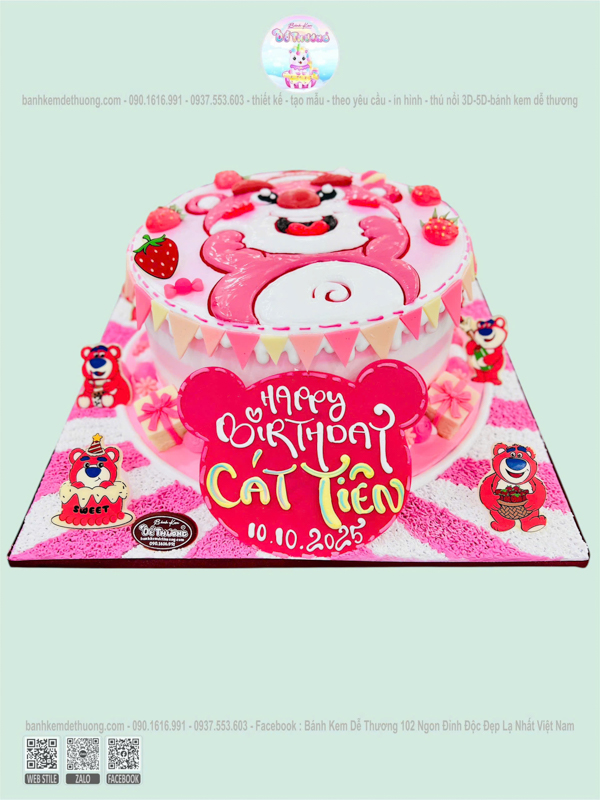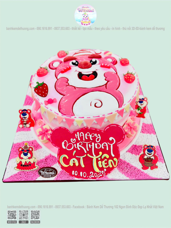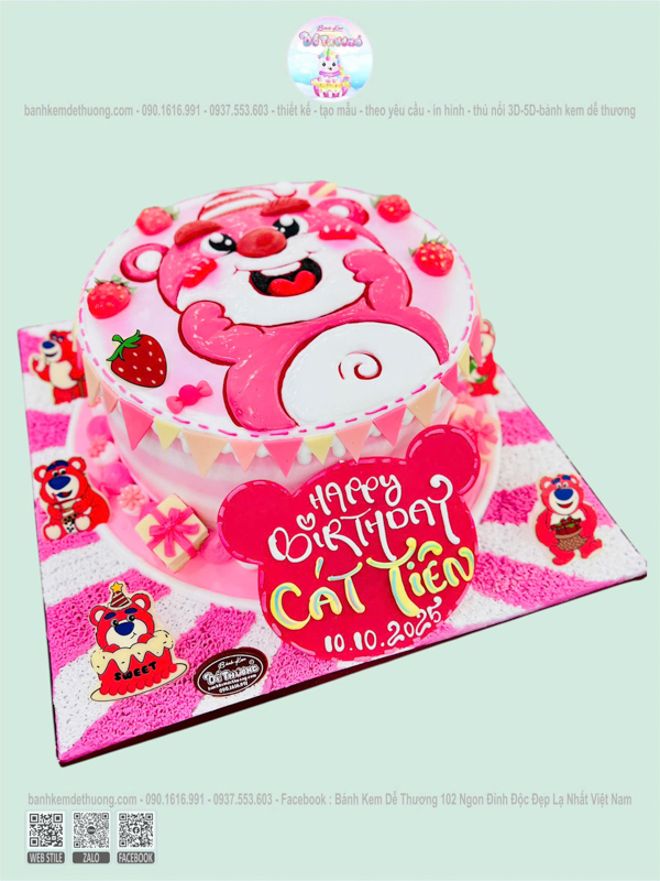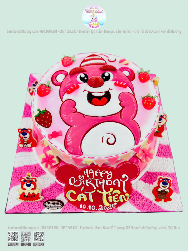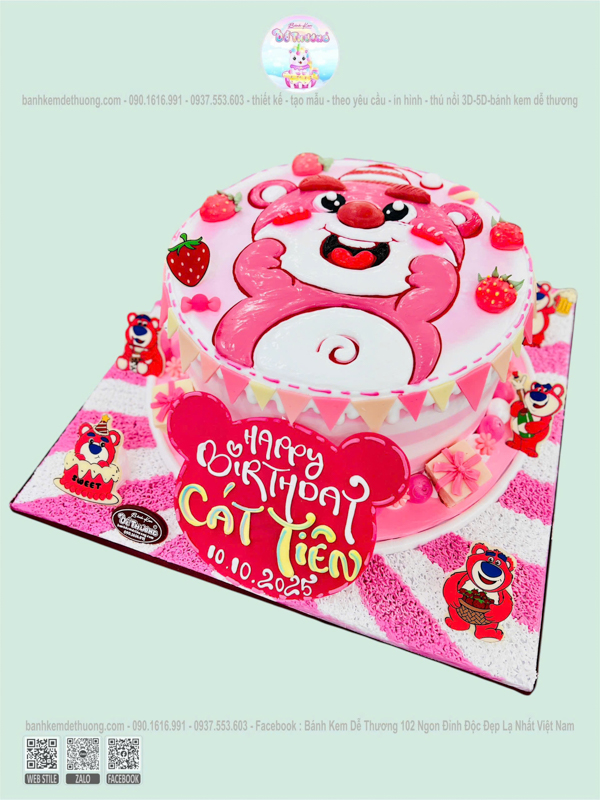bánh kem gấu dâu lotso vẽ hình chibi cát tiên dễ thương