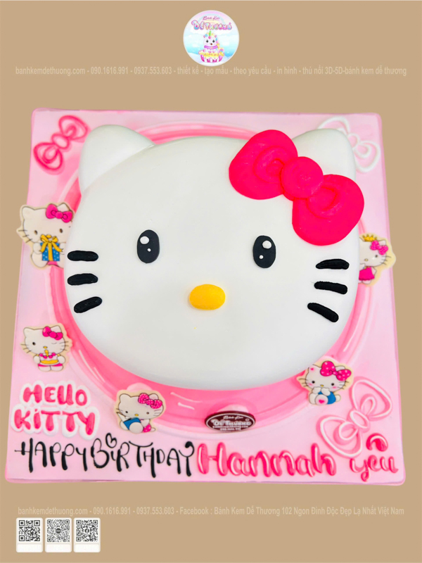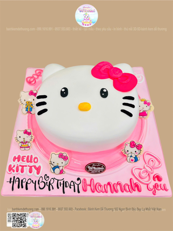 bánh kem hello kitty 3d màu hồng hannah dễ thương