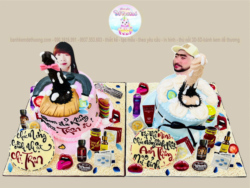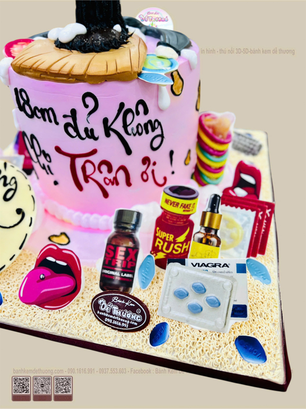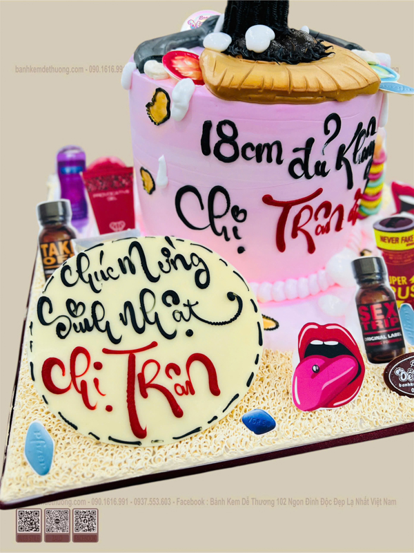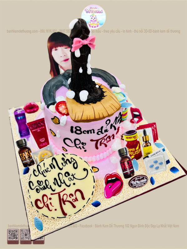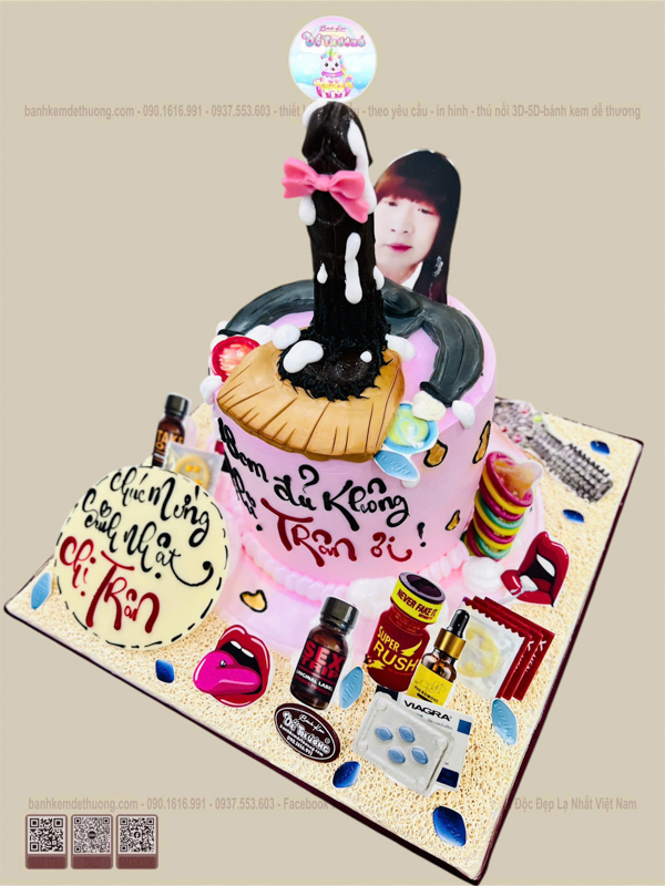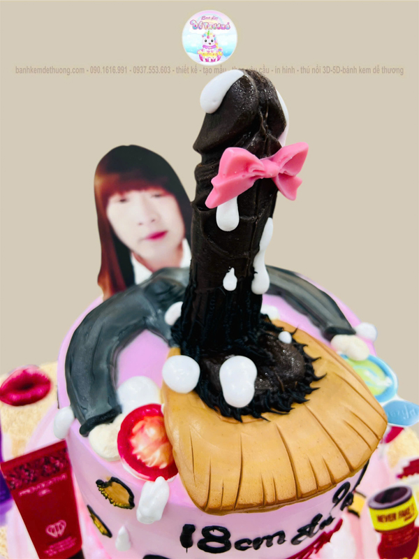 bánh kem hồng tỷ có con ciu socola màu đen tặng chị trân dễ thương