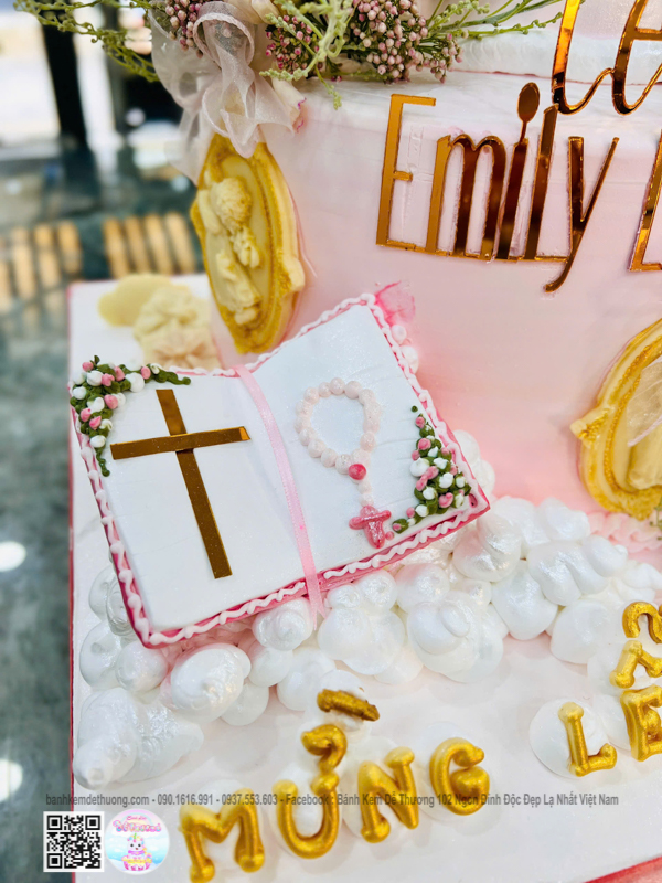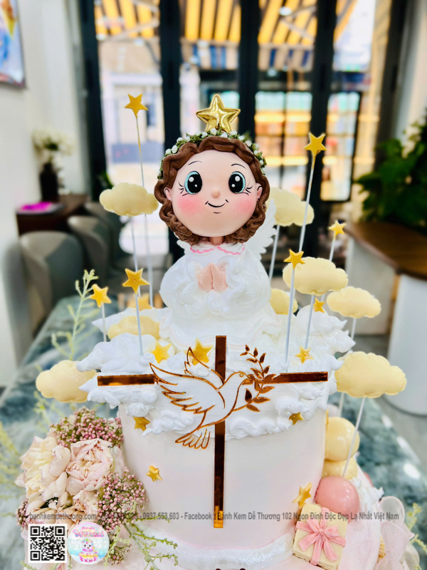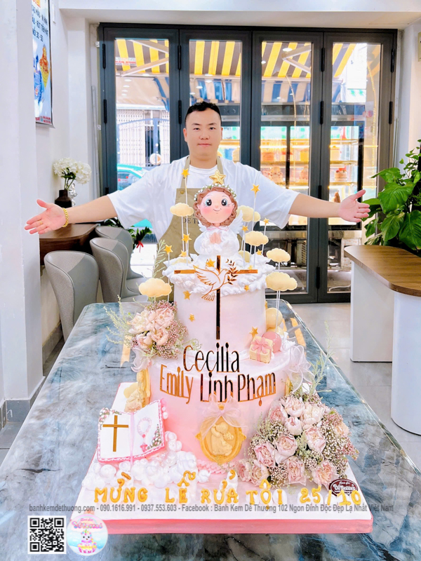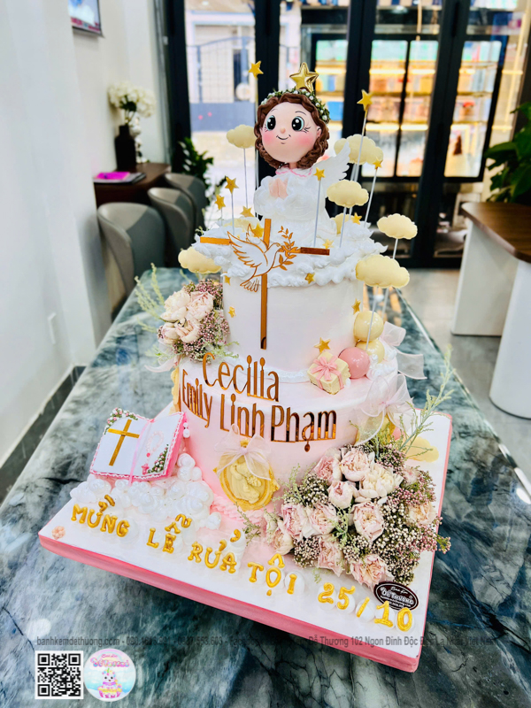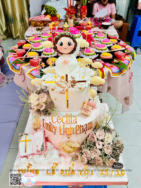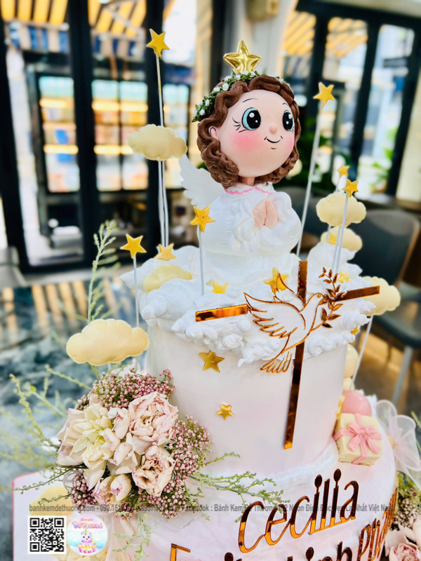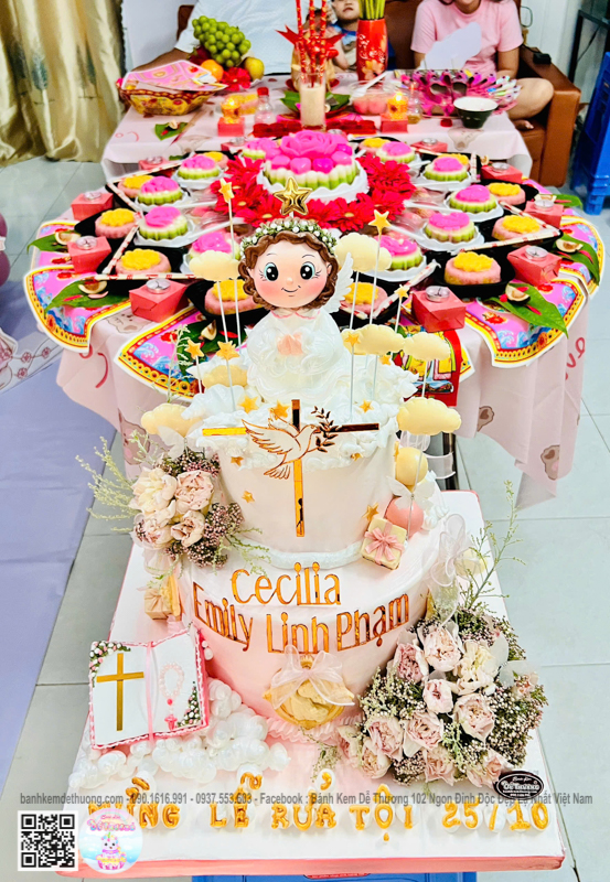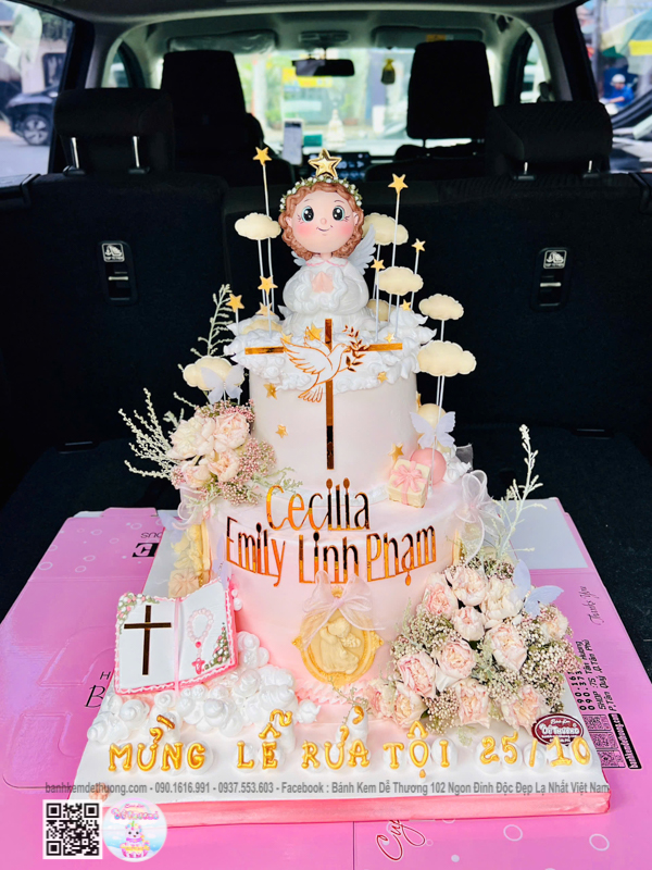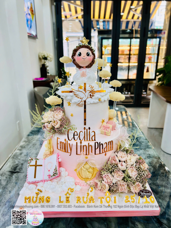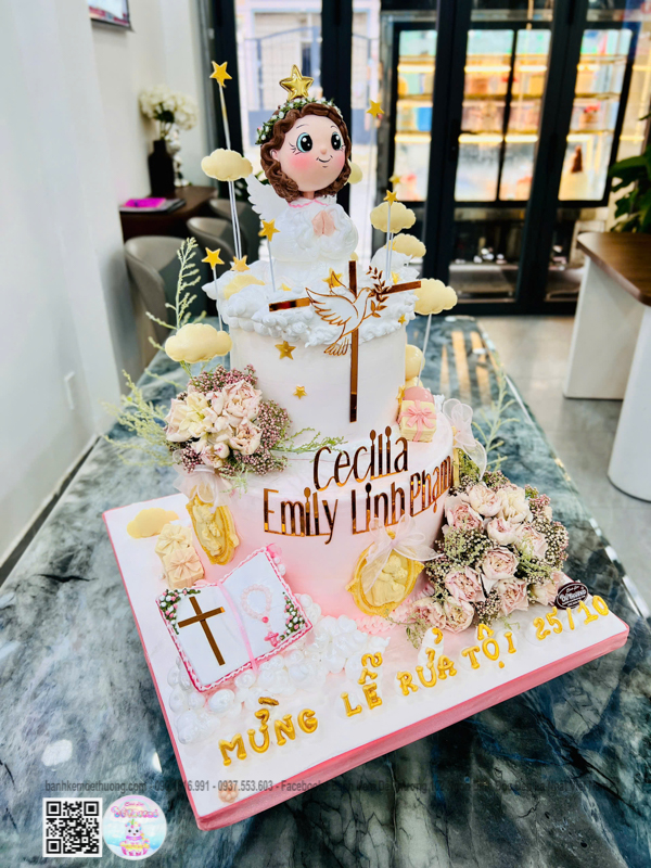 bánh kem lễ rửa tội 2 tầng con gái linh phạm dễ thương nhất việt nam