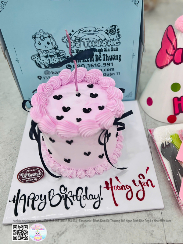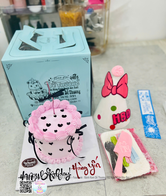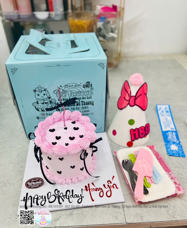 bánh kem mini tráii tim màu hồng tím hoàng yến dễ thương