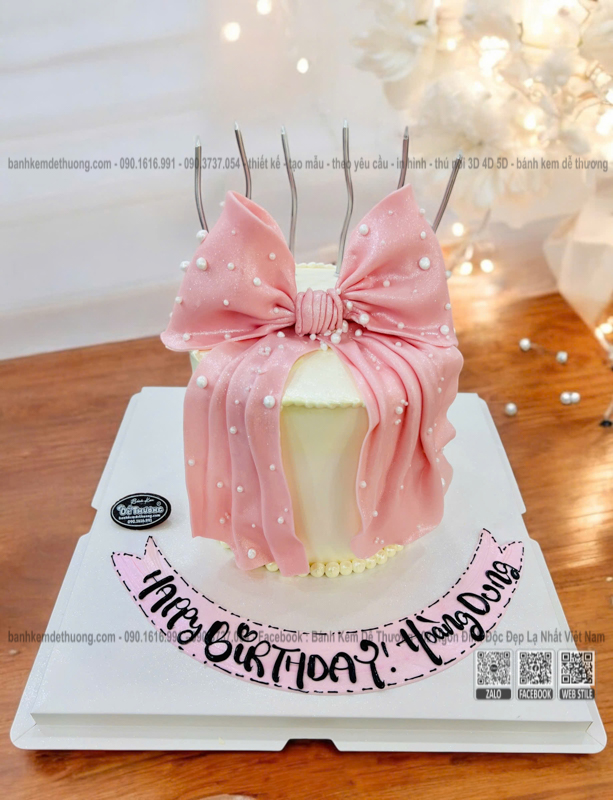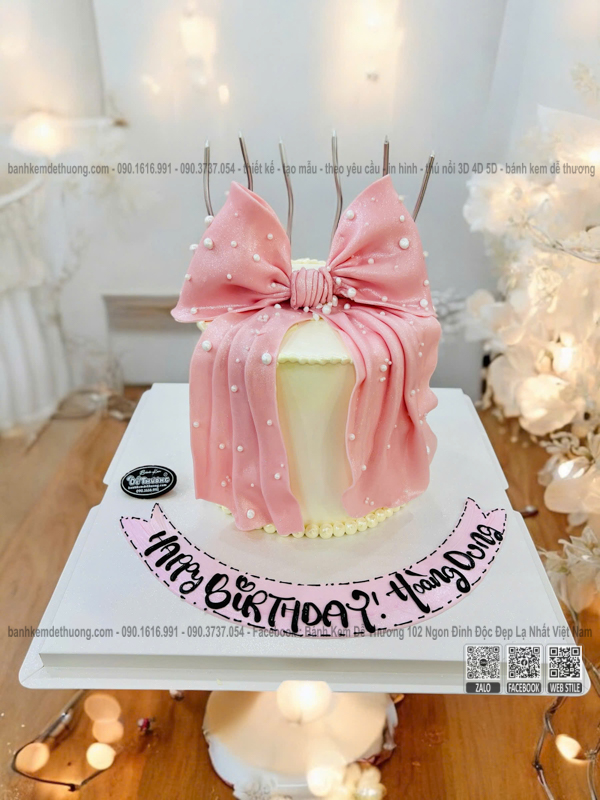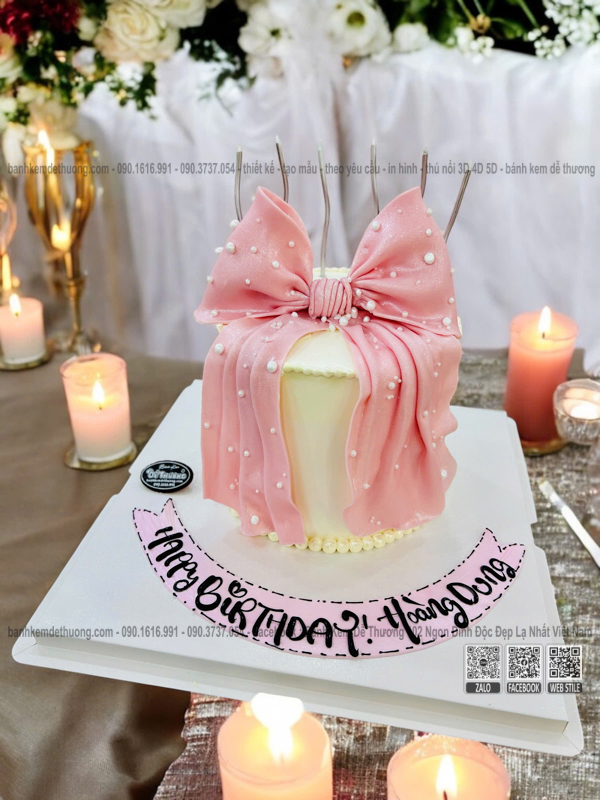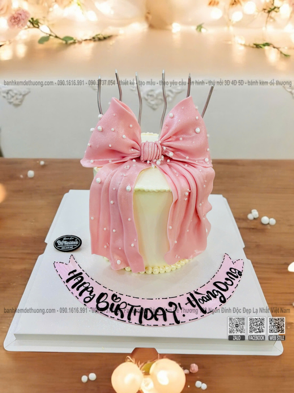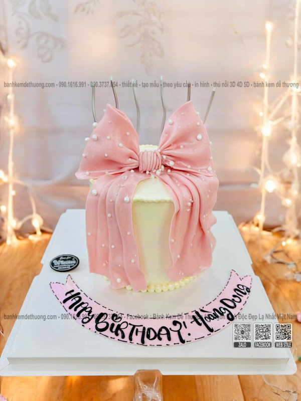bánh kem nơ đường fondand cao cấp hoàng dung dễ thương