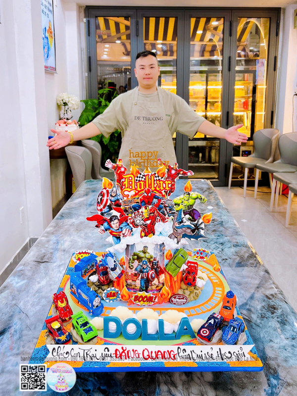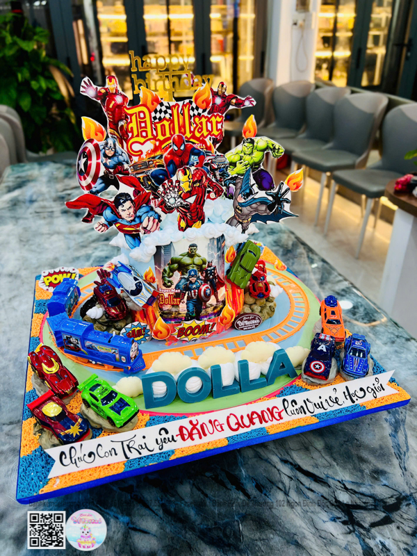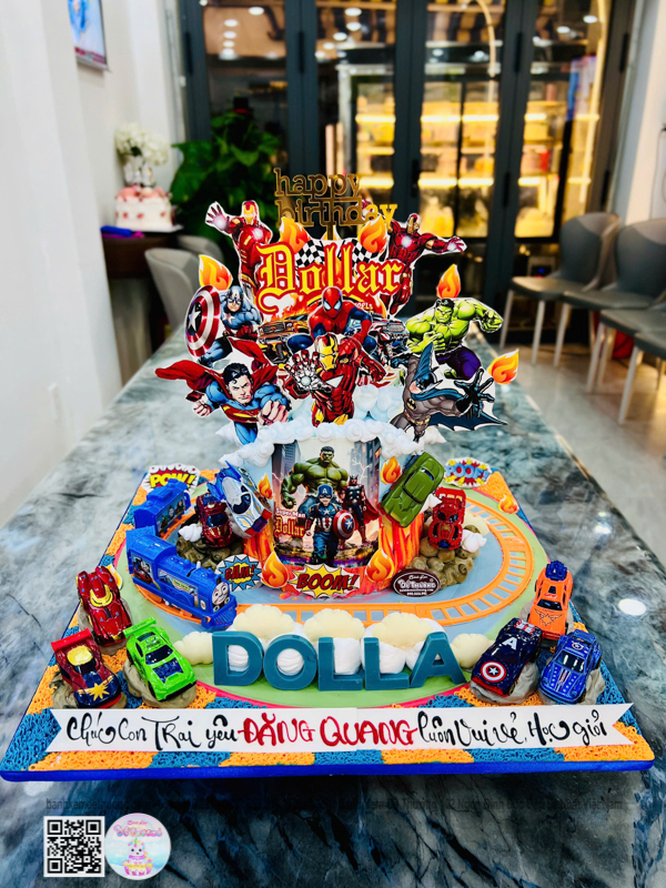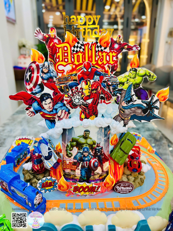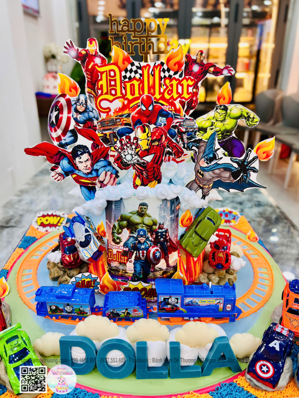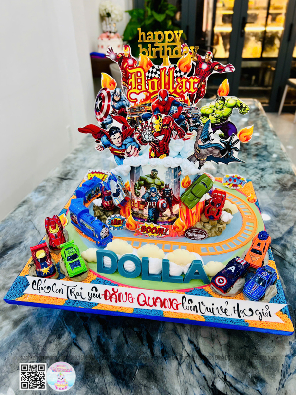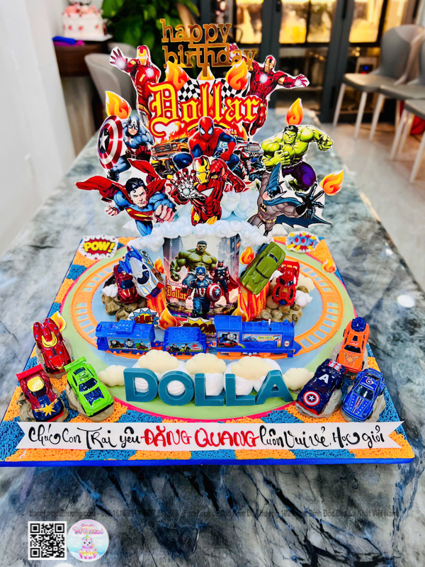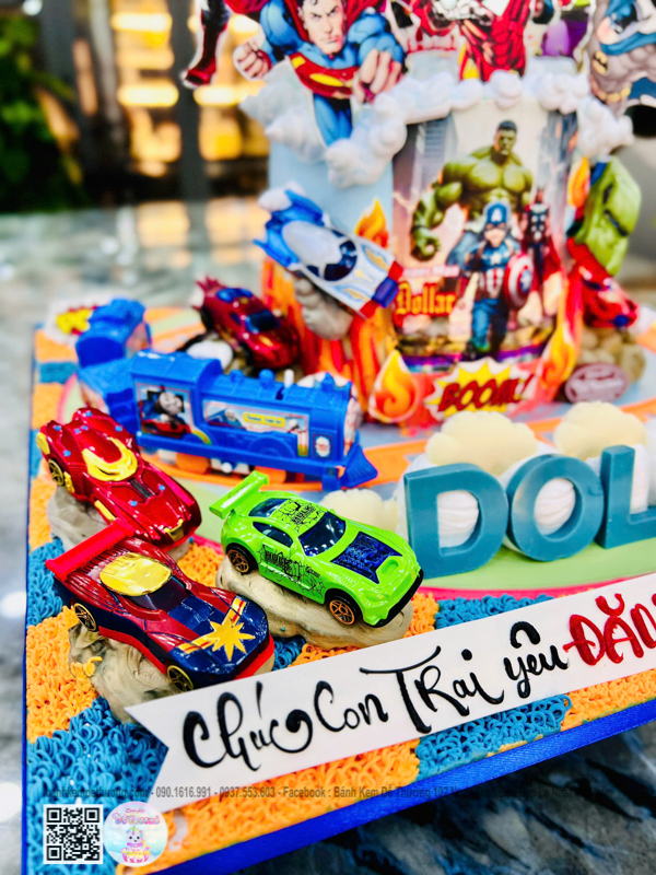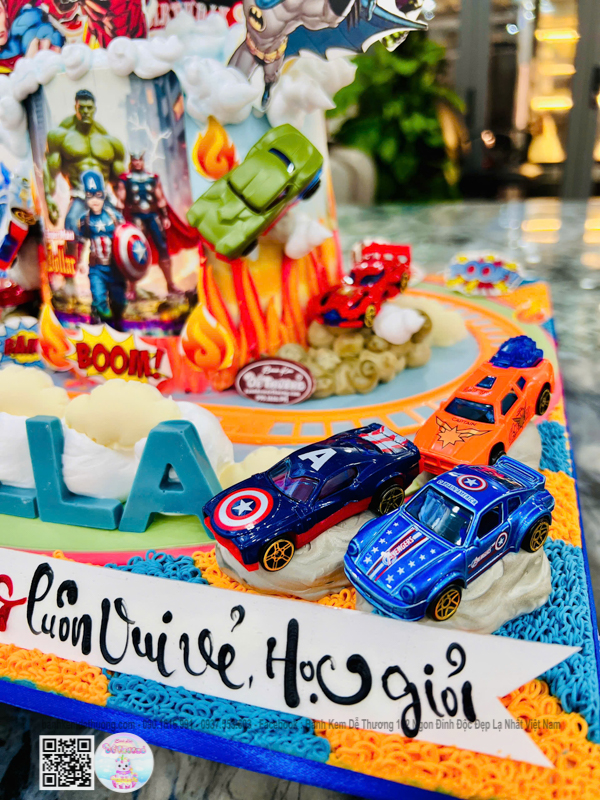 bánh kem siêu nhân anh hùng siêu xe avengers đăng quang dễ thương