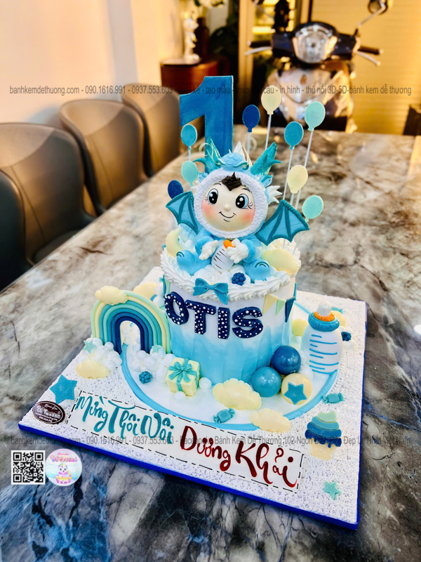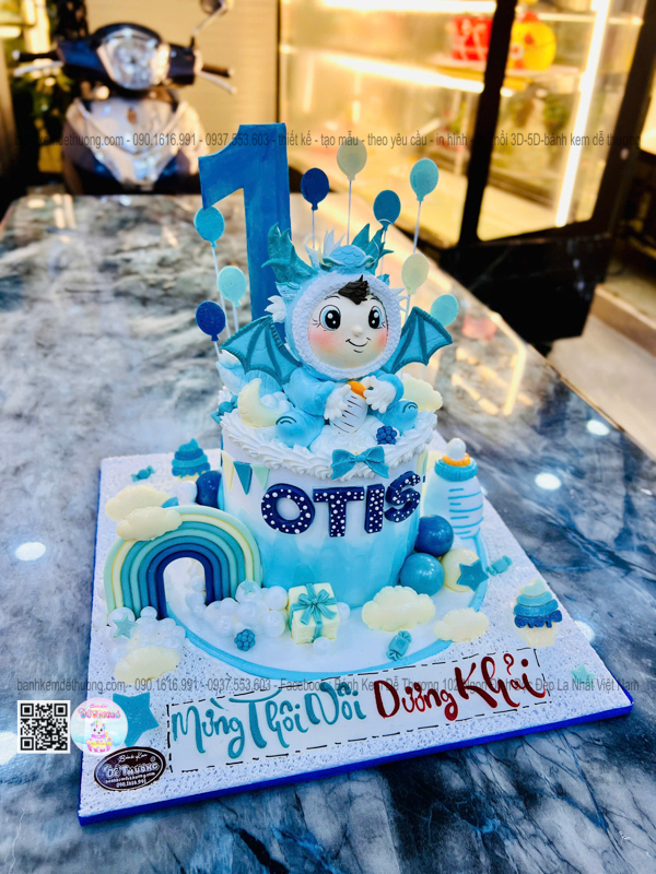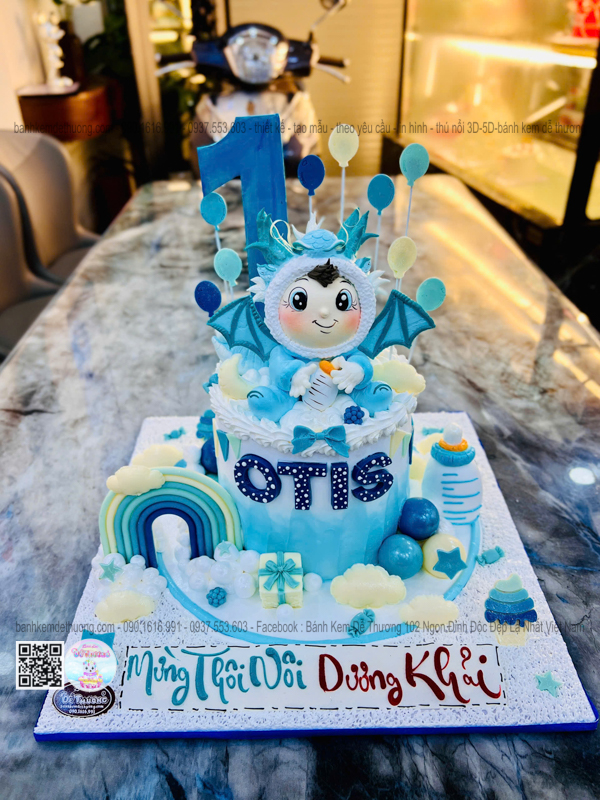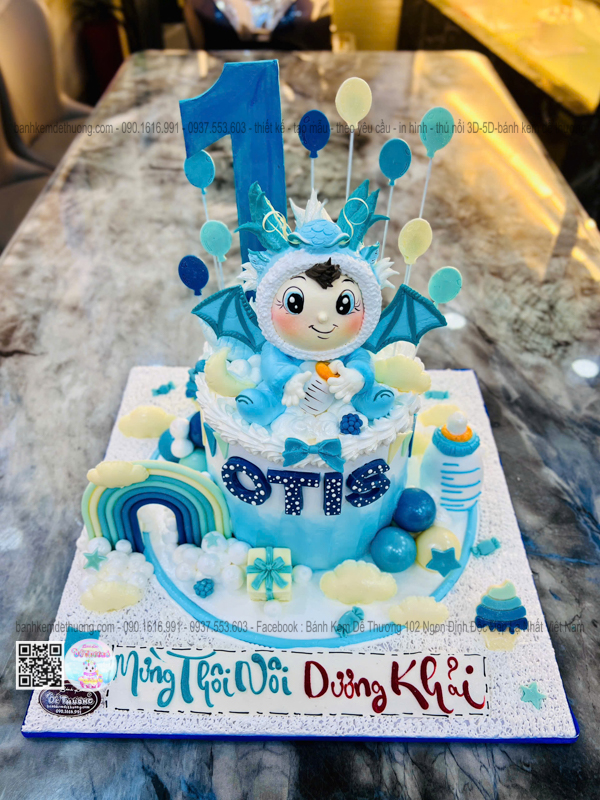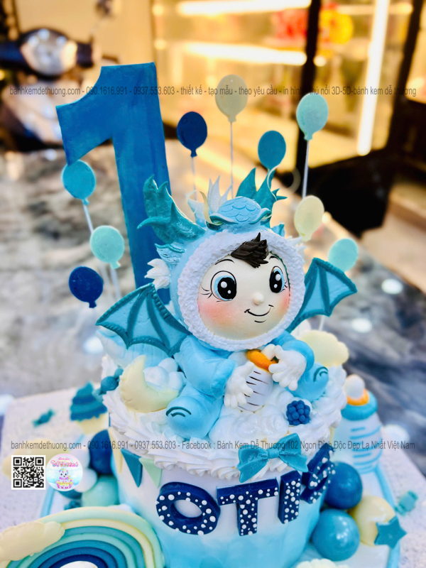 bánh kem sinh nhật con rồng bé trai mừng thôi nôi dương khải dễ thương