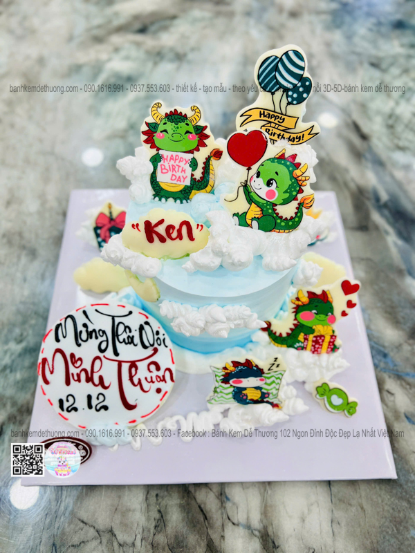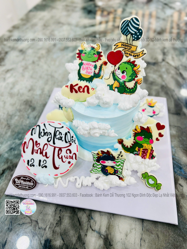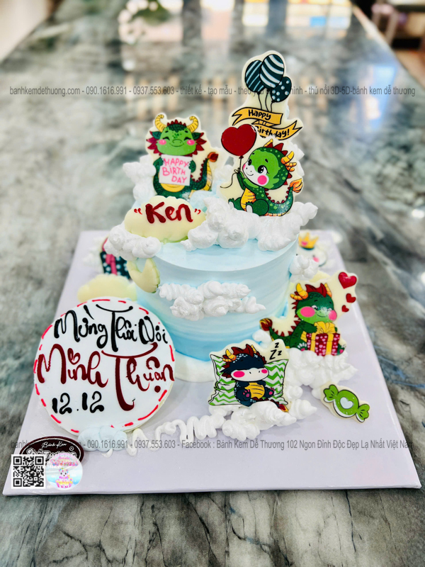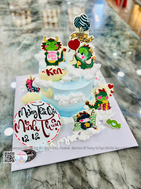 bánh kem sinh nhật con rồng socola thôi nôi bé minh thuận dễ thương