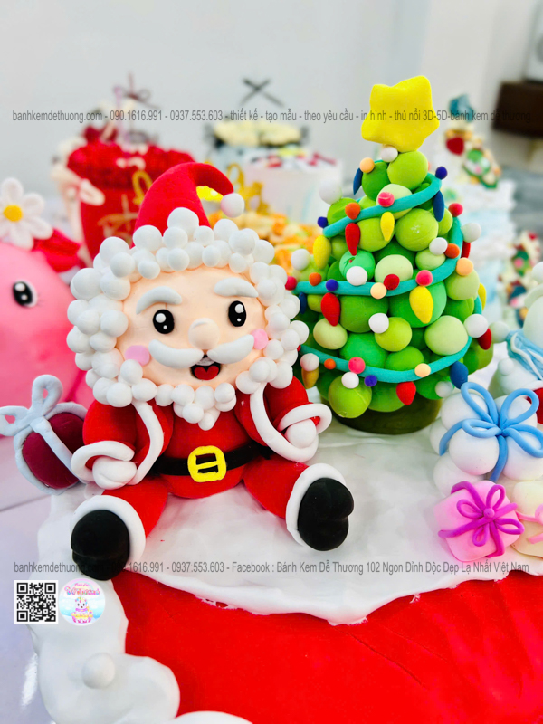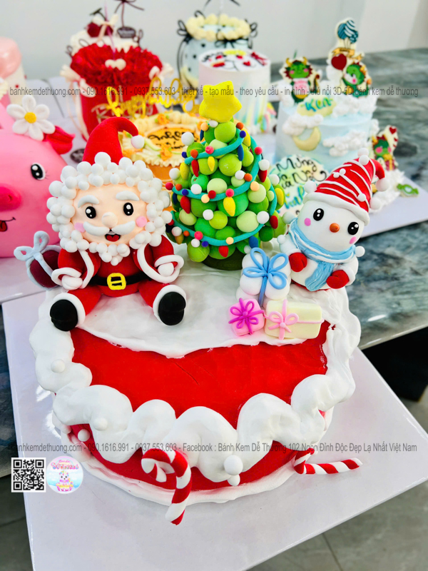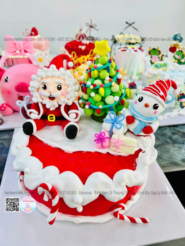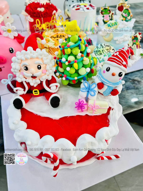bánh kem sinh nhật ông già noel cây thông người tuyết dễ thương