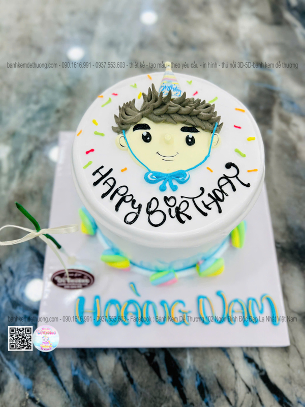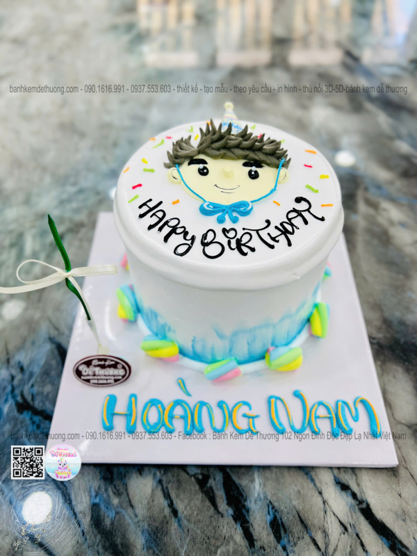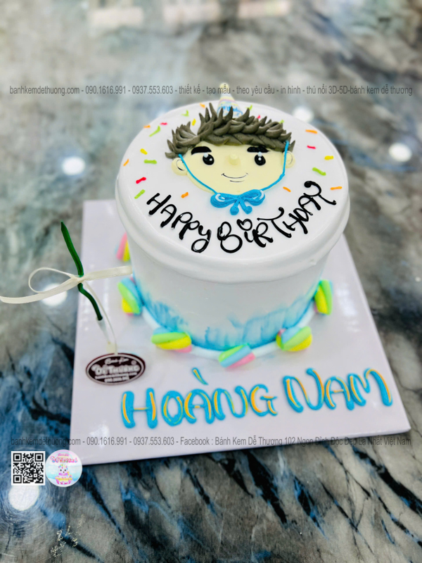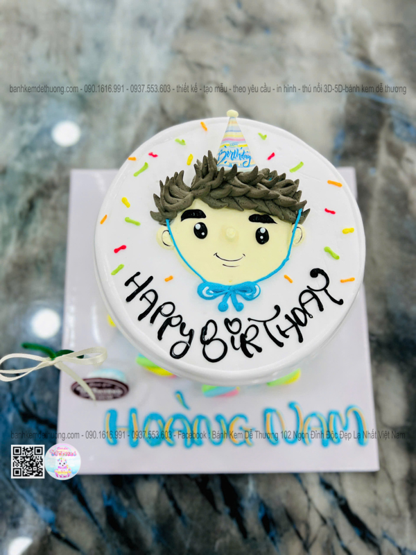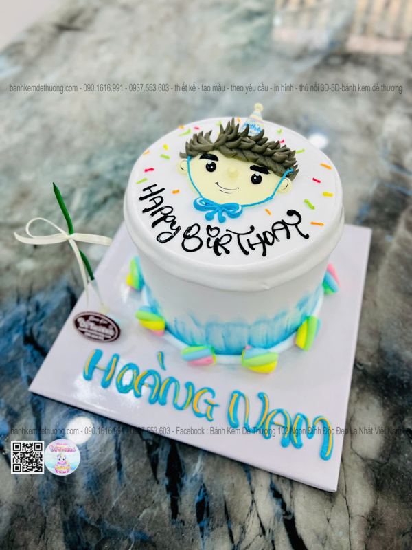 bánh kem sinh nhật vẽ hình 2d hoàng nam dễ thương