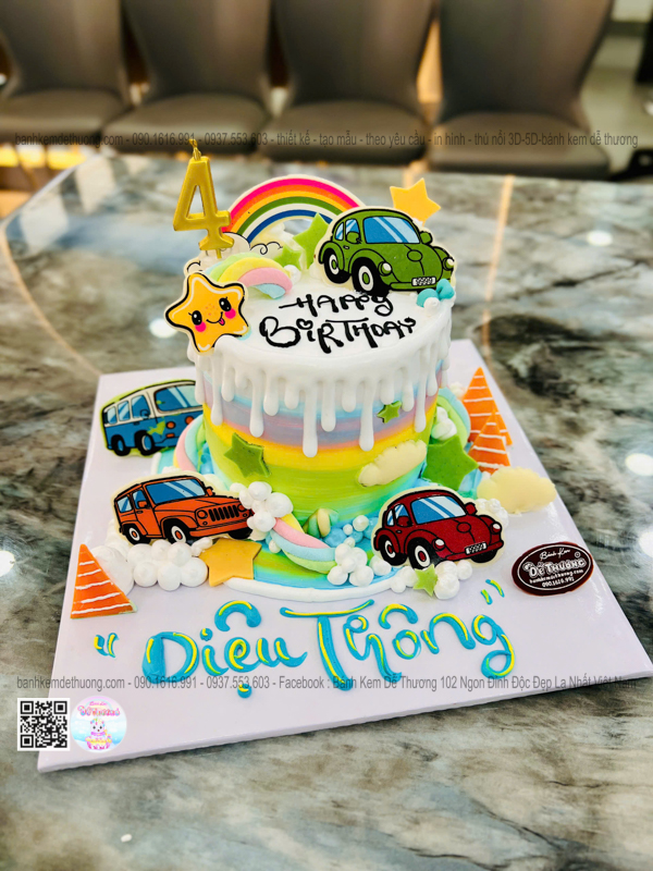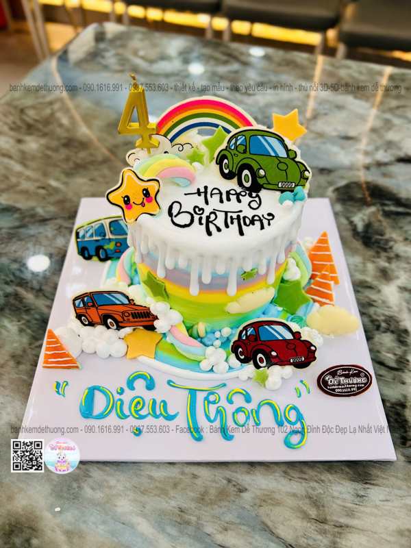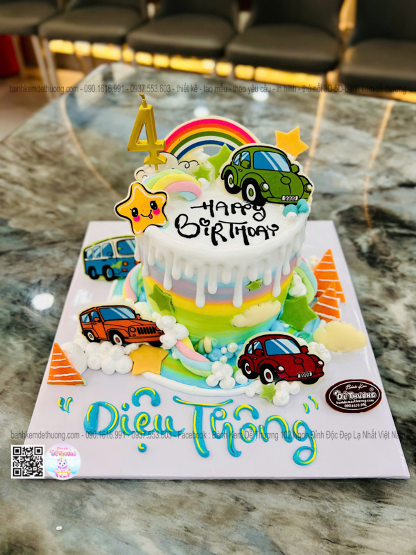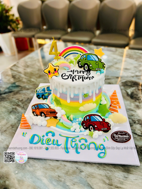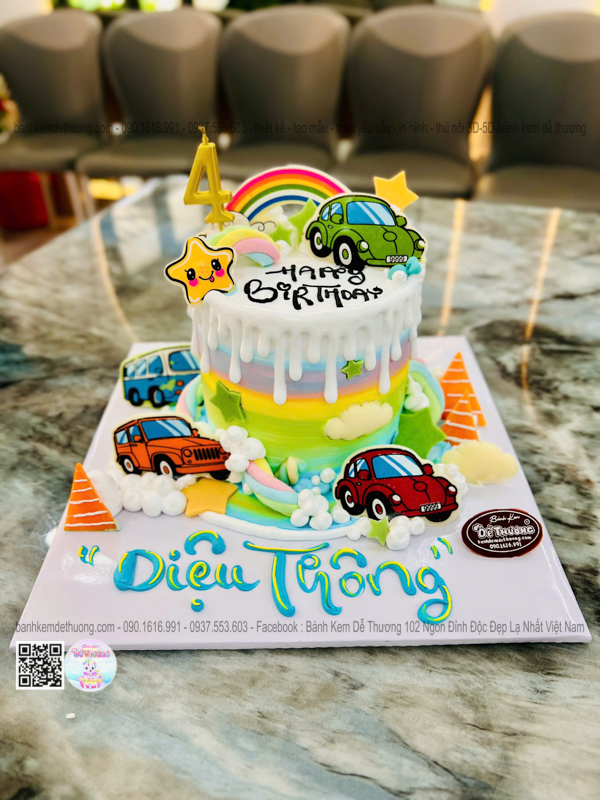 bánh kem sinh nhật xe socola diệu thông dễ thương