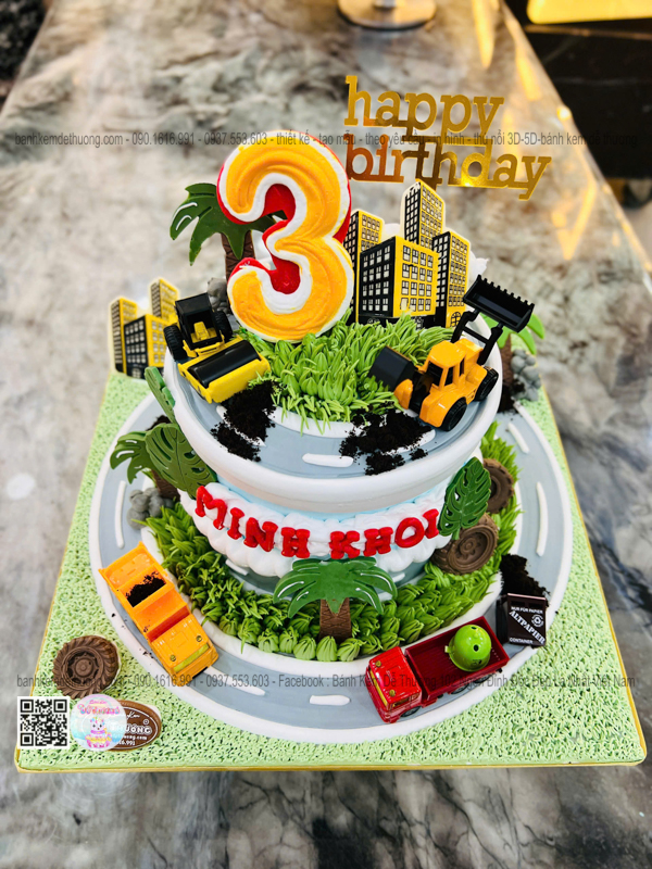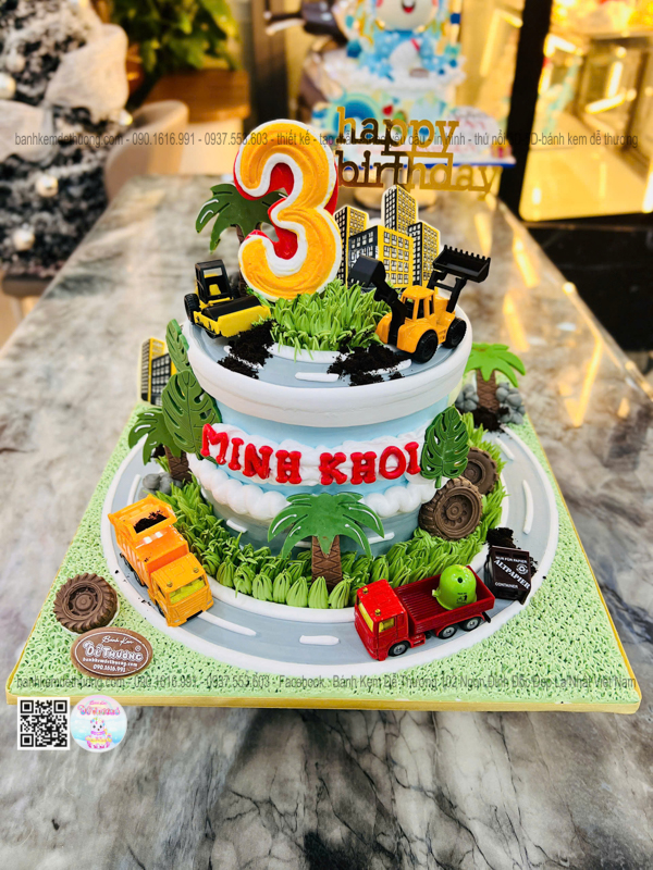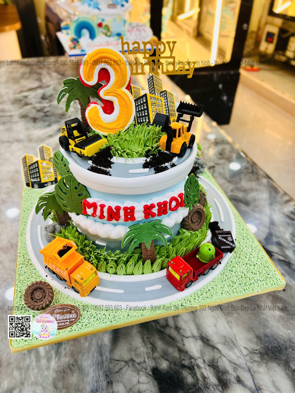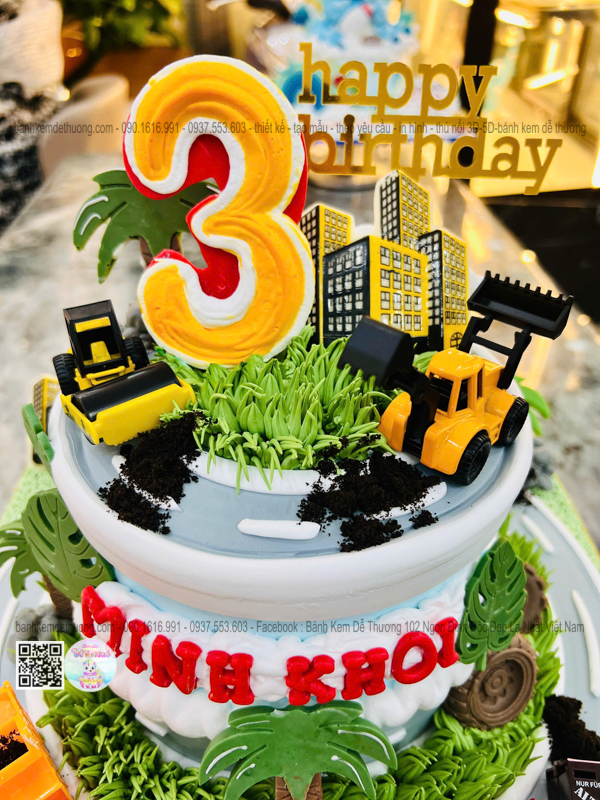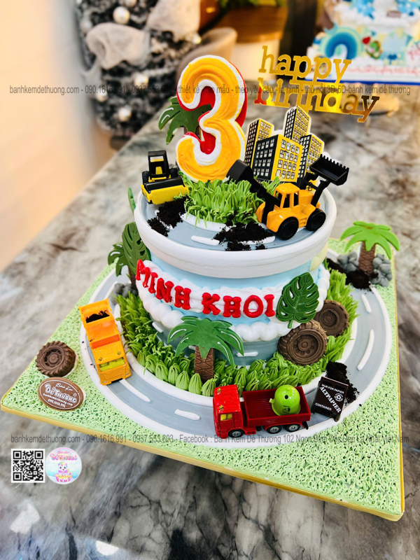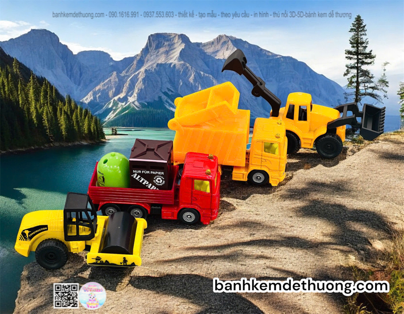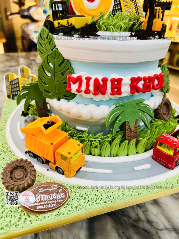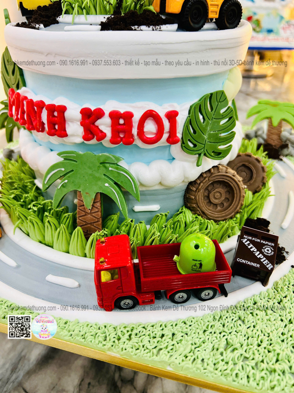 bánh kem sinh nhật xe tải xe cào đất xe chở rác độc lạ tặng bé trai dễ thương