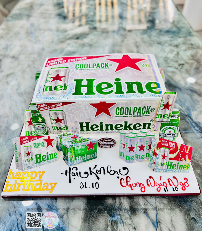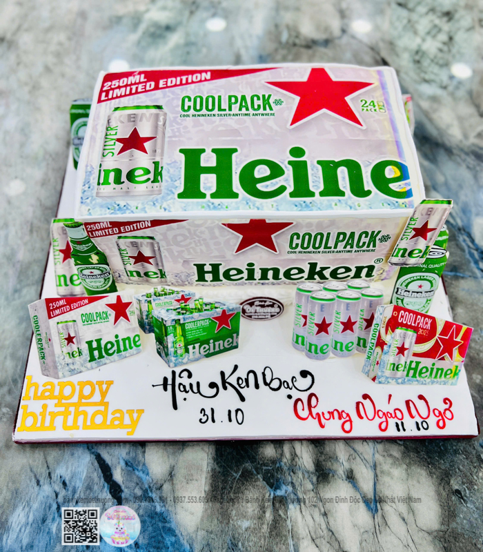 bánh kem thùng bia henieken siliver cao cấp dễ thương