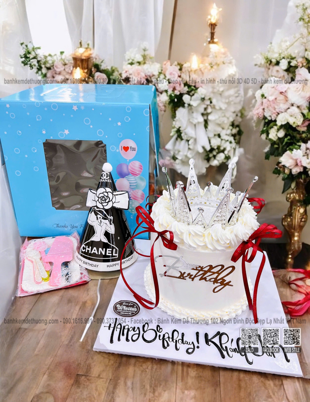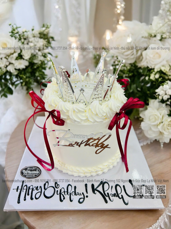 bánh kem vương miện kim tuyến sang trọng tặng nữ dễ thương