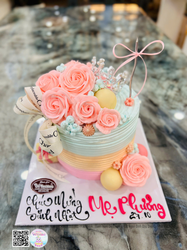 bánh kem vương niệm hoa hồng dành tặng mẹ phương dễ thương