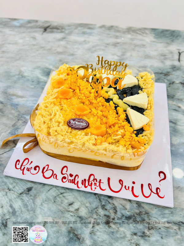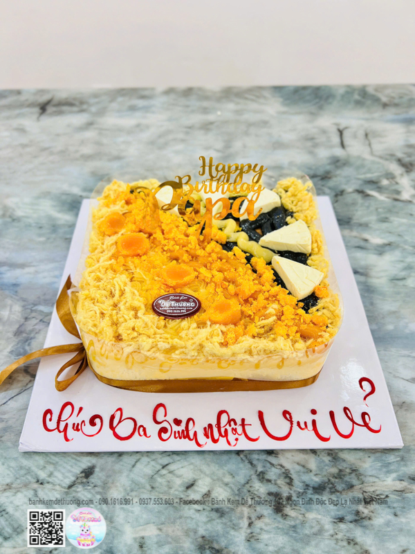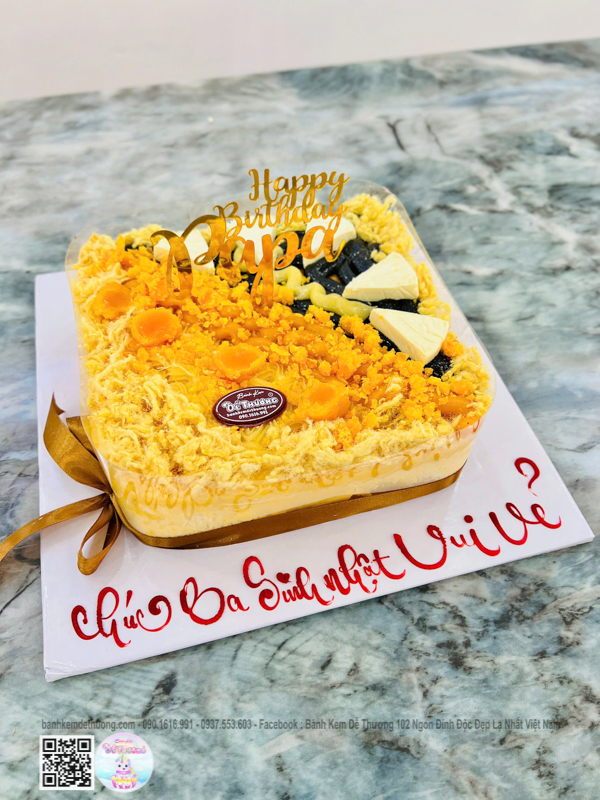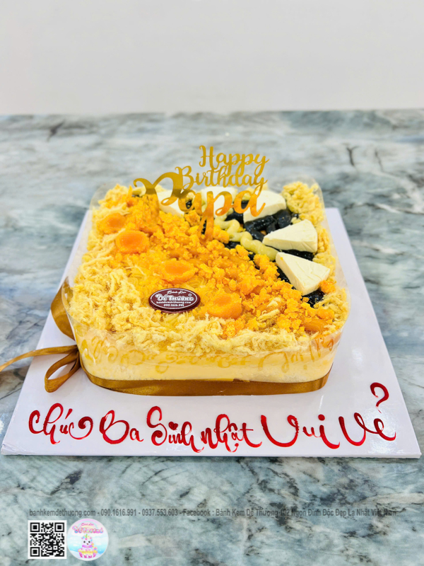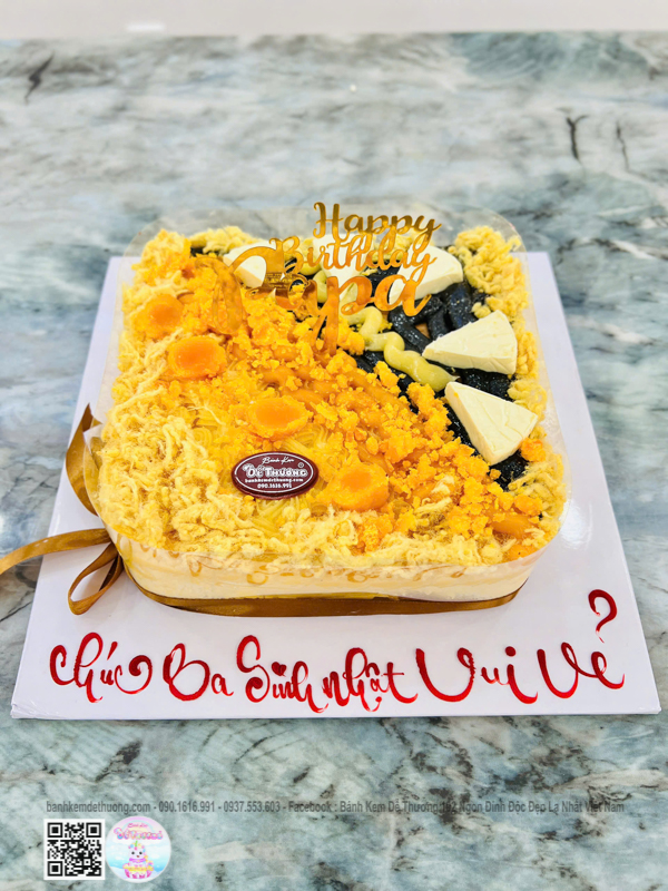 bánh sinh nhật bông lan trứng muối chà bông tặng ba dễ thương